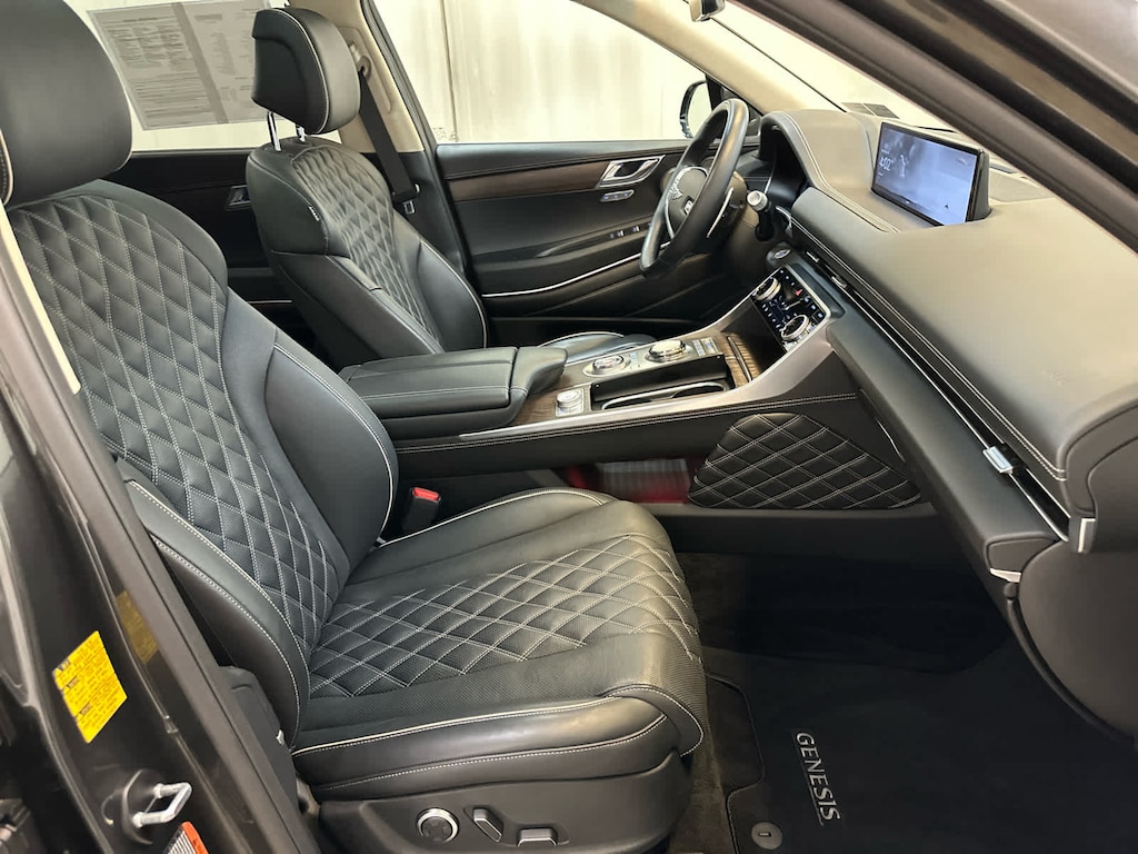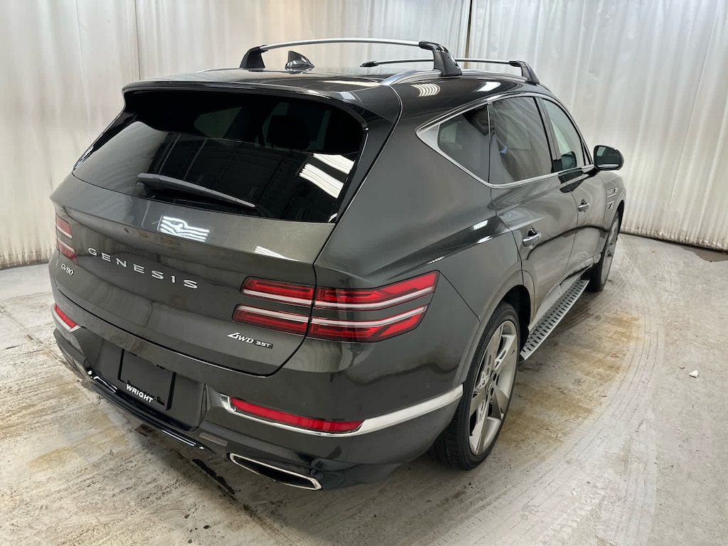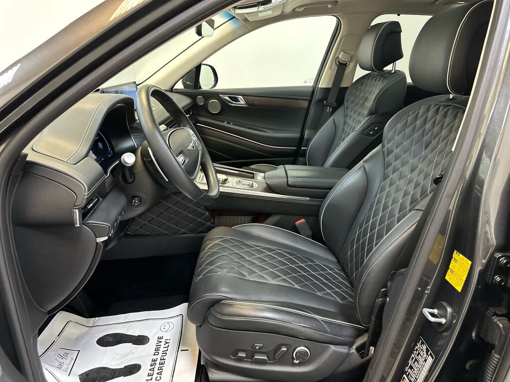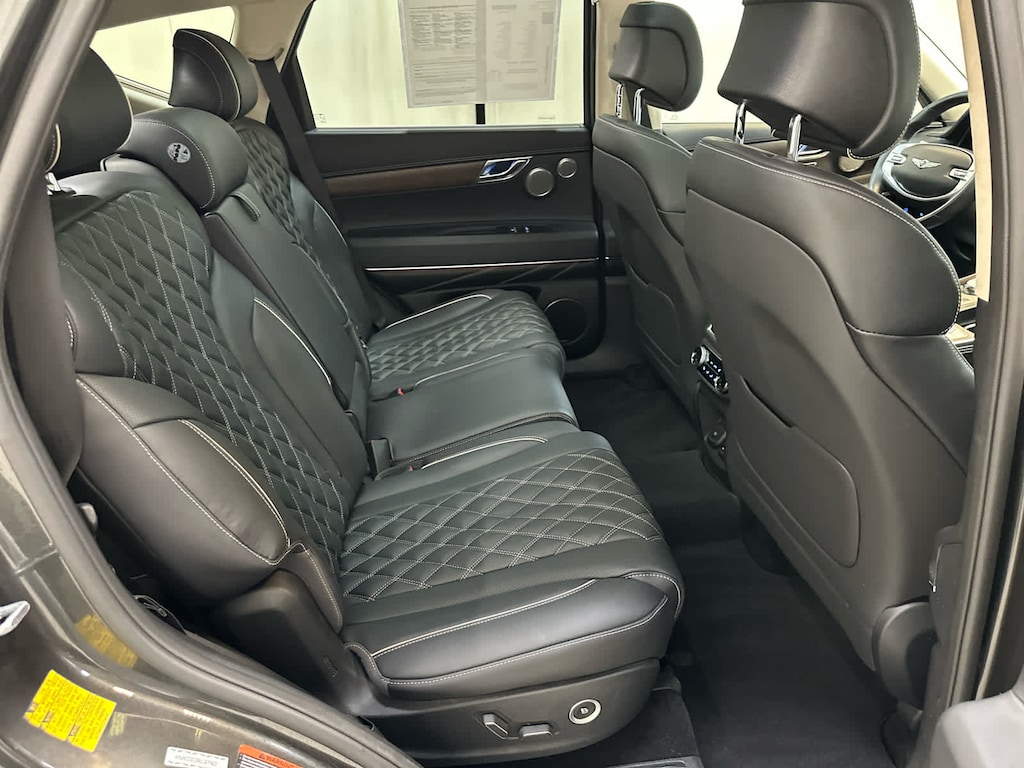Navigation, Power Liftgate, Rear Air, Heated Driver Seat, Cooled Driver Seat, Back-Up Camera, Satellite Radio, iPod/MP3 Input, Onboard Communications System, Dual Moonroof, Aluminum Wheels, Remote Engine Start, Dual Zone A/C, WiFi Hotspot, Blind Spot Monitor Genesis GV80 with Makalu Gray exterior and Black/Black interior features a V6 Cylinder Engine with 375 HP at 5800 RPM*.