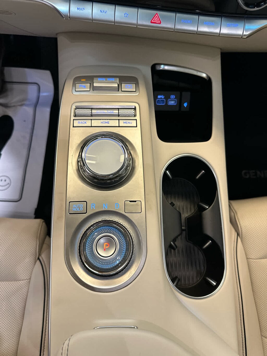Option Group 02, Power Folding ECM Mirrors w/Genesis Logo Lamp, Power Telescoping Steering Wheel, Heated Steering Wheel, Integrated Memory System (IMS), smart posture care and memory for driver seat, outside mirrors and steering column, Power Tilt & Slide Panoramic Sunroof, 1 touch open/close, Option Group 03, Blind-Spot View Monitor, Reverse Parking Collision-Avoidance Assist, 4-Way Power Lumbar Front Passenger Seat, Adjustable Interior Ambient Lighting, Surround View Monitor, Advanced Rear Occupant Alert, Forward/Reverse Parking Distance Warning, 2nd Row 110V AC Power Outlet, TOW HITCH, CARGO COVER. Rear Spoiler, MP3 Player, Remote Trunk Release, Keyless Entry, Privacy Glass.