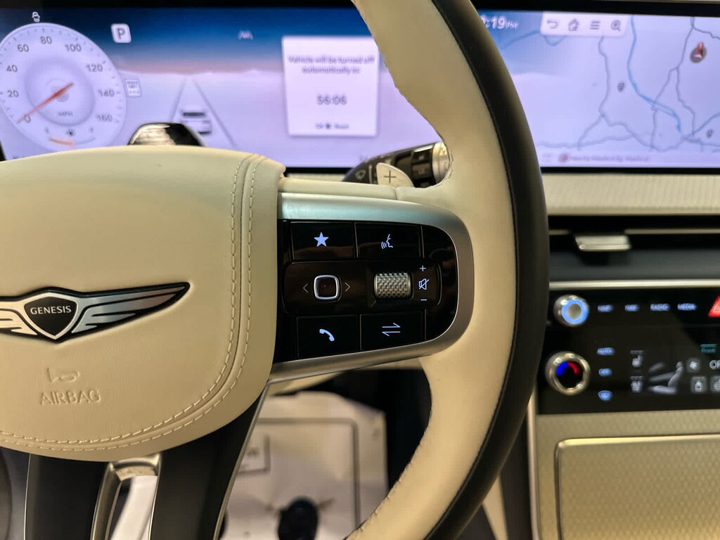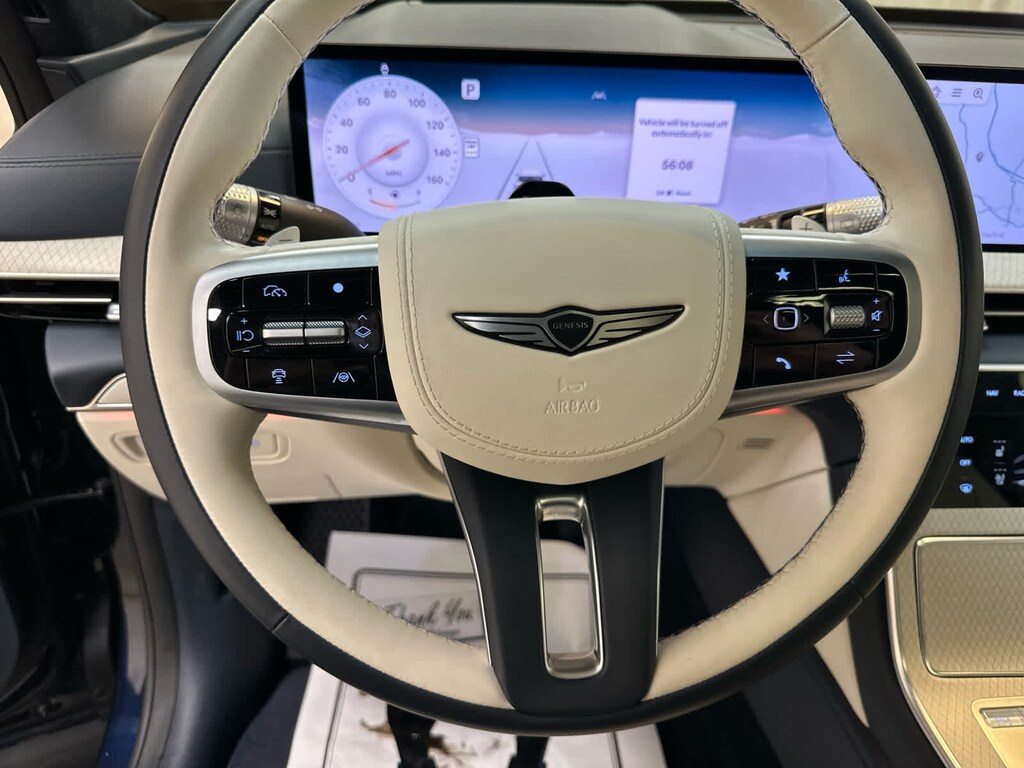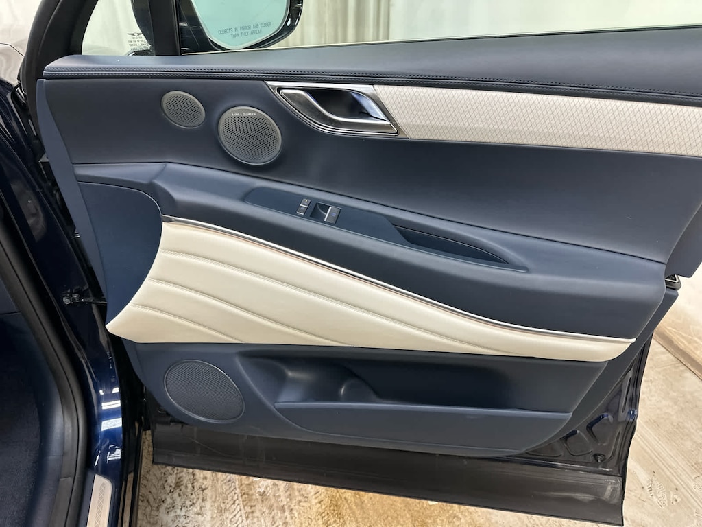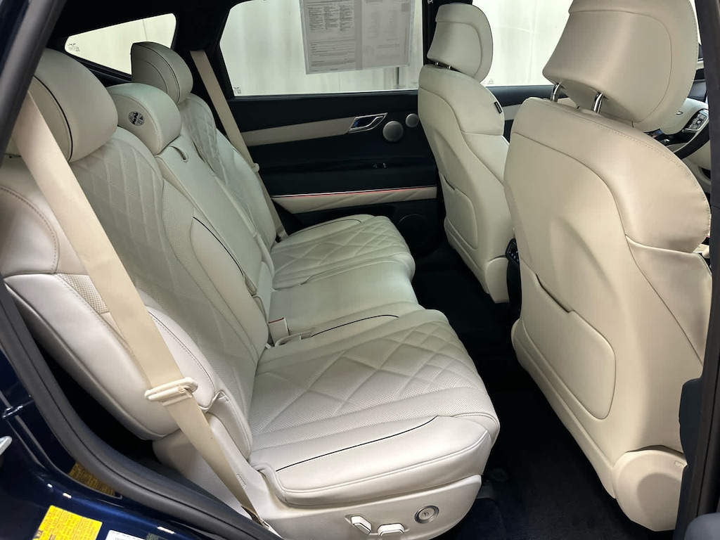 Leather Seats, Navigation, All Wheel Drive, Power Liftgate, Rear Air, Heated Driver Seat, Heated Rear Seat, Cooled Driver Seat, Cooled Rear Seat, Back-Up Camera, Turbocharged, Premium Sound System, Satellite Radio, iPod/MP3 Input, Onboard Communications System Genesis Prestige with Capri Blue exterior and Glacier White/Blue interior features a V6 Cylinder Engine with 375 HP at 5800 RPM*.