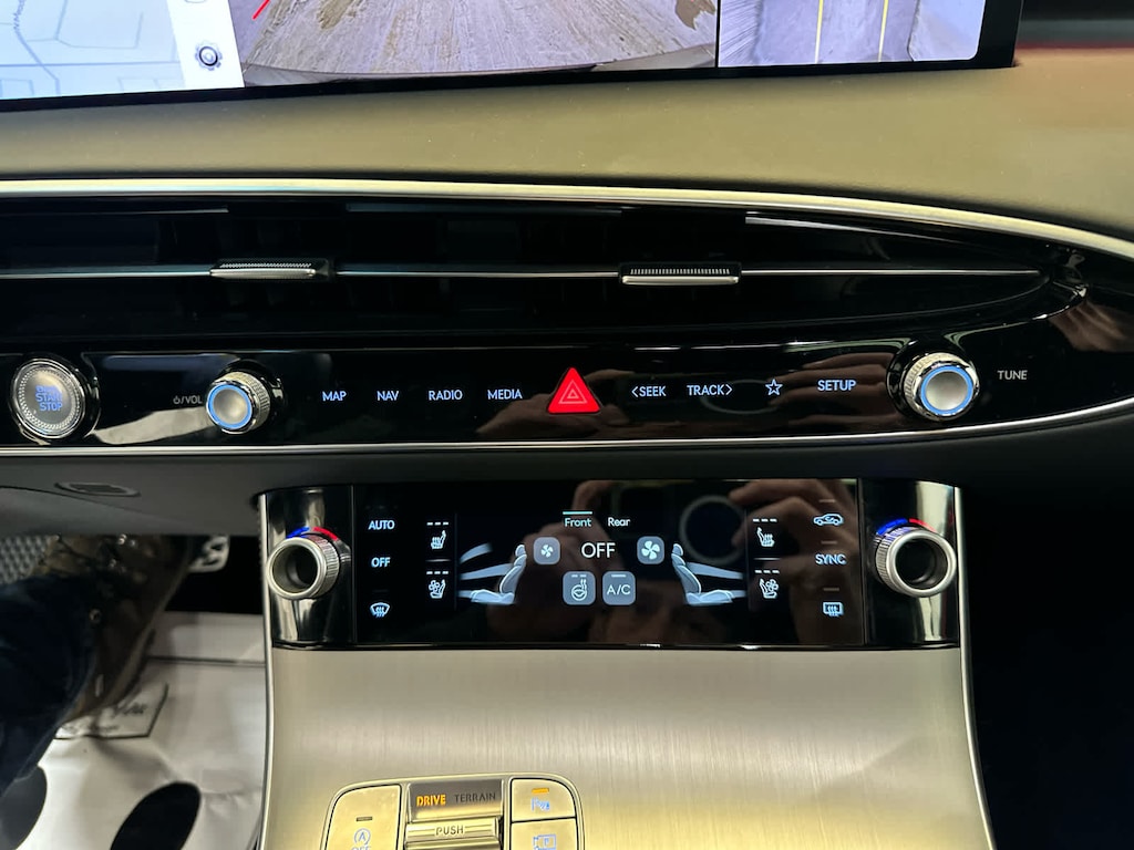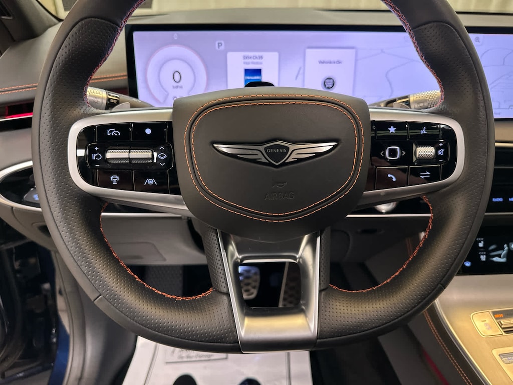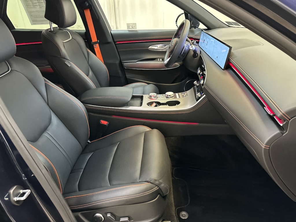 Leather Seats, Navigation, Sunroof, Panoramic Roof, Power Liftgate, Heated Driver Seat, Cooled Driver Seat, Back-Up Camera, Premium Sound System, Satellite Radio, iPod/MP3 Input, Onboard Communications System, Aluminum Wheels, Remote Engine Start, Dual Zone A/C Genesis 3.5T Sport Advanced with Capri Blue exterior and Obsidian Black interior features a V6 Cylinder Engine with 375 HP at 5800 RPM*.