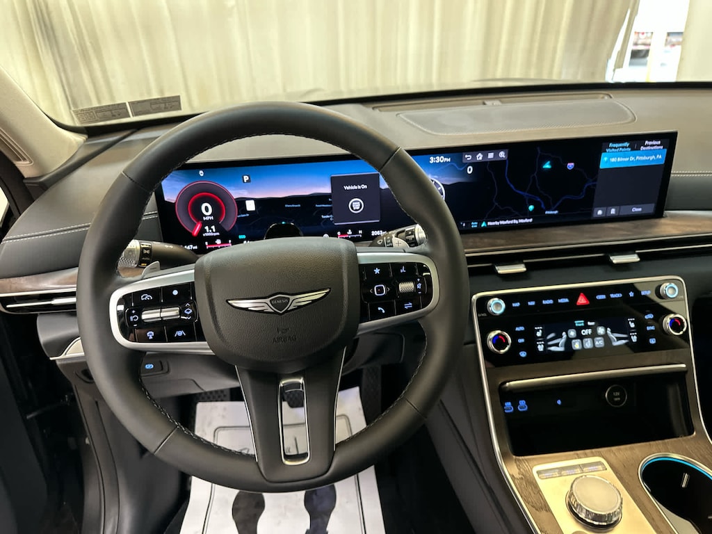 Leather Seats, Third Row Seat, Navigation, All Wheel Drive, Power Liftgate, Rear Air, Heated Driver Seat, Cooled Driver Seat, Back-Up Camera, Premium Sound System, Satellite Radio, iPod/MP3 Input, Onboard Communications System, Dual Moonroof, Aluminum Wheels Genesis 2.5T Advanced with Makalu Gray exterior and Obsidian Black interior features a 4 Cylinder Engine with 300 HP at 5800 RPM*.