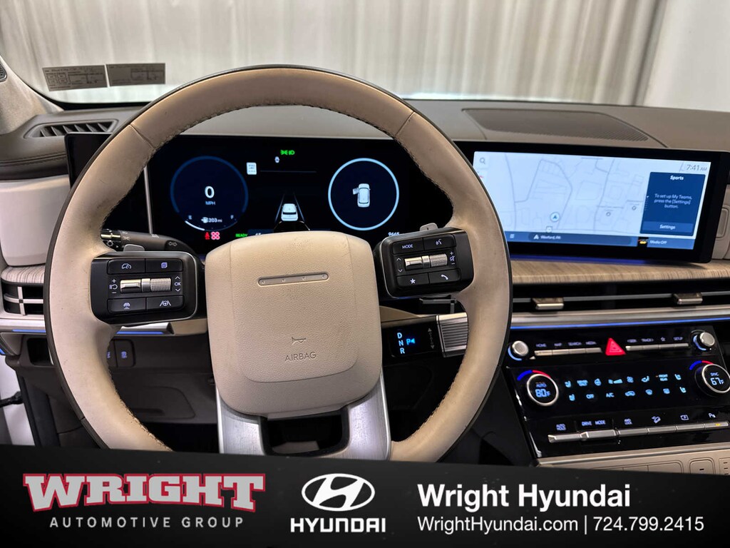 Leather Seats, Third Row Seat, Navigation, All Wheel Drive, Quad Bucket Seats, Power Liftgate, Heated Driver Seat, Heated Rear Seat, Cooled Driver Seat, Back-Up Camera, Hybrid, Premium Sound System, Satellite Radio, iPod/MP3 Input, Onboard Communications System. Hyundai Calligraphy with Serenity White exterior and Forest Green/Beige interior features a 4 Cylinder Engine with 231 HP at 5500 RPM*.