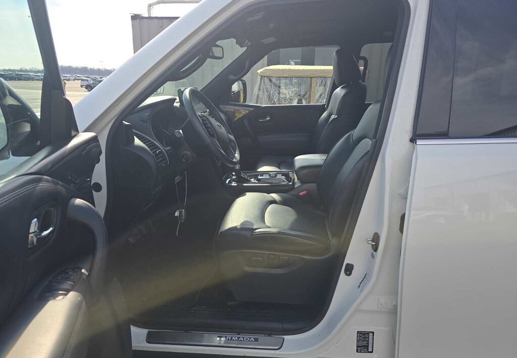 MIDNIGHT EDITION PACKAGE black exterior logos, black interior headliner and black interior trim, Rear LED Lamps w/Black Paint Finisher, Wheels: 20 x 8J Aluminum Alloy, 12-spoke, Cargo Mat & Midnight Edition Floor Mats, Black Painted Roof Rails, Front & Rear Lower Center Bumper Fascias, Black painted, Black Painted Grille, Auto-Dimming Exterior Mirror w/LED Turn Signals, Black painted, heated, power adjust and folding and reverse linked w/puddle lights, CAPTAINS CHAIRS PACKAGE Seating revised from 8 to 7 passengers, 2nd Row Captains Chairs, 2nd Row Center Console w/Padded Armrest. Nissan SL with Aspen White Tricoat exterior and Midnight Edition interior features a 8 Cylinder Engine with 400 HP at 5800 RPM*. Serviced here, All scheduled maintenance up to date