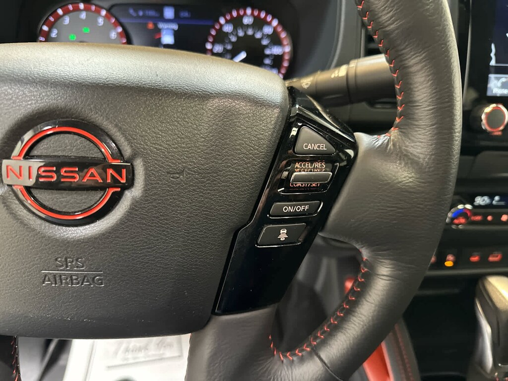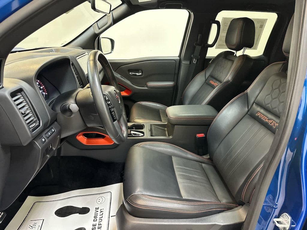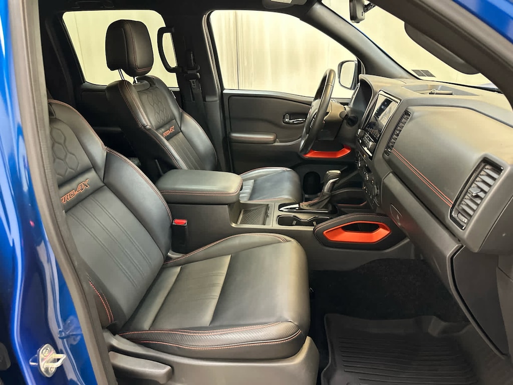 Auto-Dimming Mirror, Fender Premium Audio System w/10 Speakers, dual subwoofer, Partial Under-Seat Storage Delete, 17 Accessory Dark Beadlock Style Alloy Wheels, Factory installed accessory, HomeLink UGDO, Auto-Tilt & Slide Sunroof w/Manual Shade, Bed Under-Rail Lighting, Remote Engine Starter, 120V Power Outlet in Bed, Heated Front Seats, Intelligent Around View Monitor (I-AVM), Moving Object Detection and off-road mode, Utili-Track System, 2 adjustable tie-down cleats, Spray-In Bedliner, Trailer Hitch w/Wiring Harness, VPC installed accessory, Heated Steering Wheel, Wireless Charging For Personal Devices, Heated Outside Mirrors, 120V Power Outlet in Rear Center Console, Rear Sonar System, Rear Automatic Braking (RAB), Traffic Sign Recognition (TSR), High Beam Assist (HBA), Blind Spot Warning (BSW), Rear Cross Traffic Alert (RCTA), Intelligent Cruise Control (ICC), Lane Departure Warning (LDW), OFF-ROAD STYLE STEP RAILS, adventure medic kit, off-road adventure kit, door scuff protector and owners manual portfolio, All-Season Floor Mats. Nissan PRO-4X with Bluestone Pearl exterior and Charcoal w/Lava Red interior features a V6 Cylinder Engine with 310 HP at 6400 RPM*. Serviced here, Originally bought here, All scheduled maintenance up to date