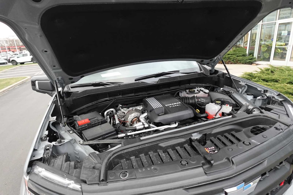 ENGINE, DURAMAX 3.0L TURBO-DIESEL I6 (305 hp [227 kW] @ 3750 rpm, 495 lb-ft of torque [671 Nm] @ 2750 rpm) Includes (KW5) 220-amp alternator and (K05) engine block heater.), CONVENIENCE PACKAGE II includes (UG1) Universal Home Remote, (A48) rear sliding power window, (PZ8) Hitch Guidance with Hitch View and (UET) Trailering App Includes (UQA) Bose Premium Sound System.), SAFETY PACKAGE includes (UV2) HD Surround Vision, (UD5) Front and Rear Park Assist, (TRG) Trailer Camera Provisions, (UKV) Trailer Side Blind Zone Alert, (UFB) Rear Cross Traffic Braking, (UKK) Rear Pedestrian Alert and (U12) Perimeter Lighting, Z71 OFF-ROAD PACKAGE includes (Z71) Off-Road suspension, (JHD) Hill Descent Control, (NZZ) skid plates and (K47) heavy-duty air filter Includes Z71 hard badge, (N10) dual exhaust, (RCV) 18 bright silver painted wheels, (XCK) 265/65R18 all-terrain, blackwall tires and (NQH) 2-speed transfer case. PROTECTION PACKAGE includes (B1J) wheel house liners and (CGN) Chevytec spray-on bedliner, SEATS, FRONT BUCKET with center console (Includes (EPH) Electronic Transmission Range Selector (console mounted). AUDIO SYSTEM, CHEVROLET INFOTAINMENT 3 PREMIUM SYSTEM with Google built-in compatibility (select service plan required, terms and limitations apply) including navigation capability, 13.4 diagonal HD color touchscreen, includes multi-touch display, AM/FM stereo, Bluetooth streaming audio for music and most phones; featuring Wireless Apple CarPlay and Wireless Android Auto capability for compatible phones, advanced voice recognition, in-vehicle apps, personalized profiles for infotainment and vehicle settings (STD), TRANSMISSION