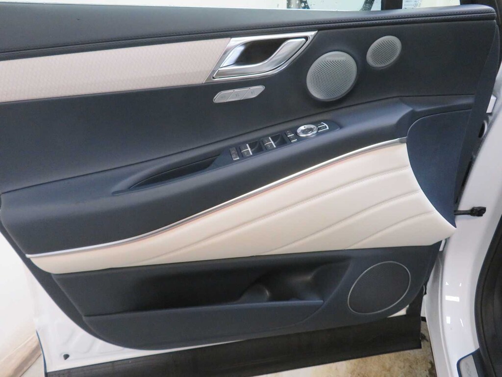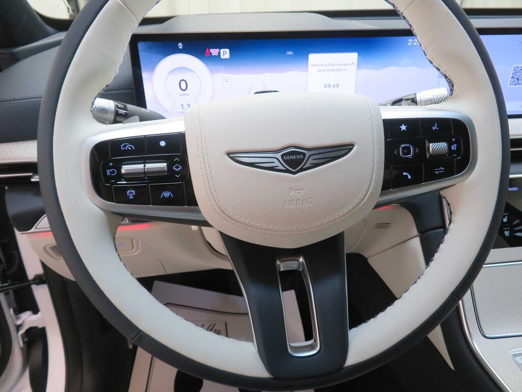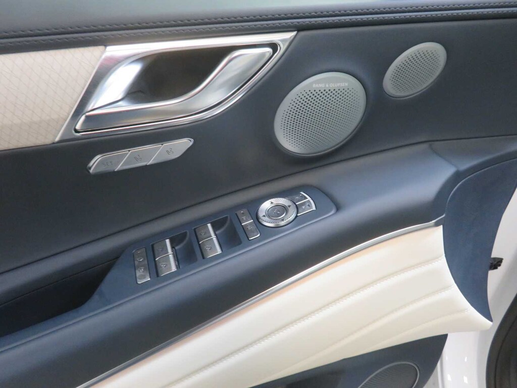 Leather Seats, Third Row Seat, Navigation, All Wheel Drive, Power Liftgate, Rear Air, Heated Driver Seat, Heated Rear Seat, Cooled Driver Seat, Cooled Rear Seat, Back-Up Camera, Turbocharged, Premium Sound System, Satellite Radio, iPod/MP3 Input Genesis Prestige with Uyuni White exterior and Glacier White/Blue interior features a V6 Cylinder Engine with 375 HP at 5800 RPM*.