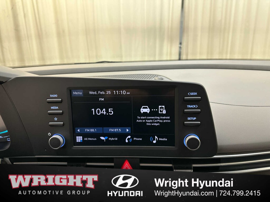 Back-Up Camera, Hybrid, iPod/MP3 Input, Bluetooth®, Aluminum Wheels, Remote Engine Start, Dual Zone A/C, Hands-Free Liftgate, Lane Keeping Assist, Apple CarPlay®, Cross-Traffic Alert, Smart Device Integration, Blind Spot Monitor Hyundai Blue with Serenity White exterior and Medium Gray interior features a 4 Cylinder Engine with 139 HP at 5700 RPM*.