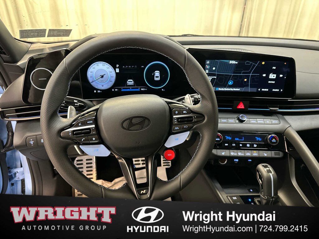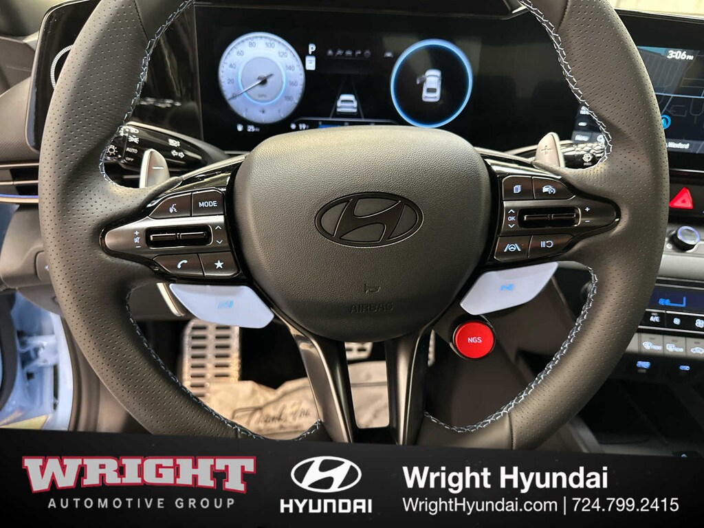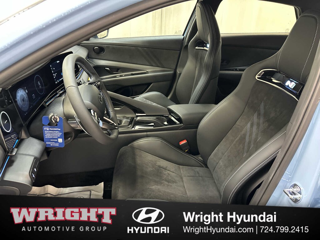 Leather Seats, Navigation, Sunroof, Heated Driver Seat, Back-Up Camera, Premium Sound System, Satellite Radio, iPod/MP3 Input, Onboard Communications System, Aluminum Wheels, Keyless Start, Dual Zone A/C, Smart Device Integration, Hands-Free Liftgate, Lane Keeping Assist Hyundai Elantra N with Performance Blue exterior and Black w/Blue Stitching interior features a 4 Cylinder Engine with 276 HP at 5500 RPM*.