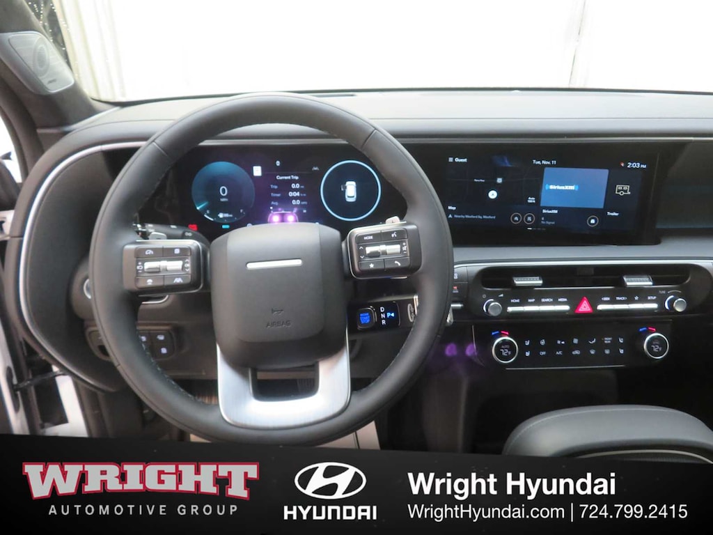 Leather Seats, Third Row Seat, Navigation, All Wheel Drive, Quad Bucket Seats, Power Liftgate, Rear Air, Heated Driver Seat, Heated Rear Seat, Cooled Driver Seat, Cooled Rear Seat, Back-Up Camera, Premium Sound System, Satellite Radio, iPod/MP3 Input Hyundai Calligraphy with Creamy White Pearl exterior and Black interior features a V6 Cylinder Engine with 287 HP at 5800 RPM*.