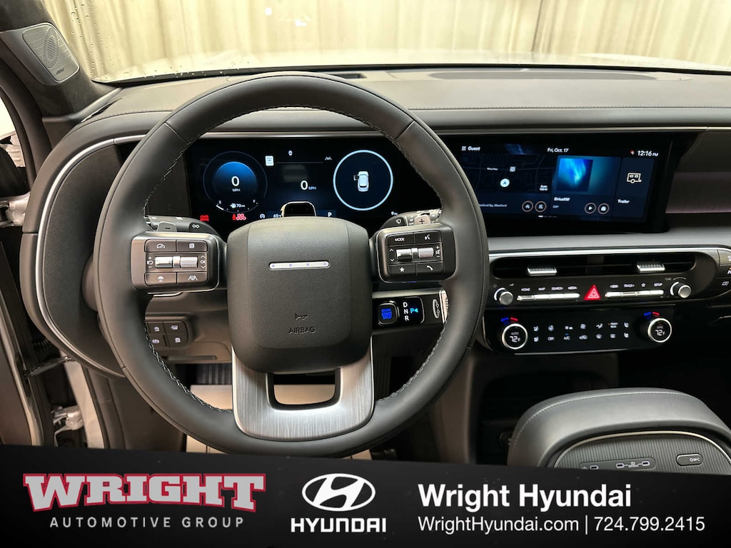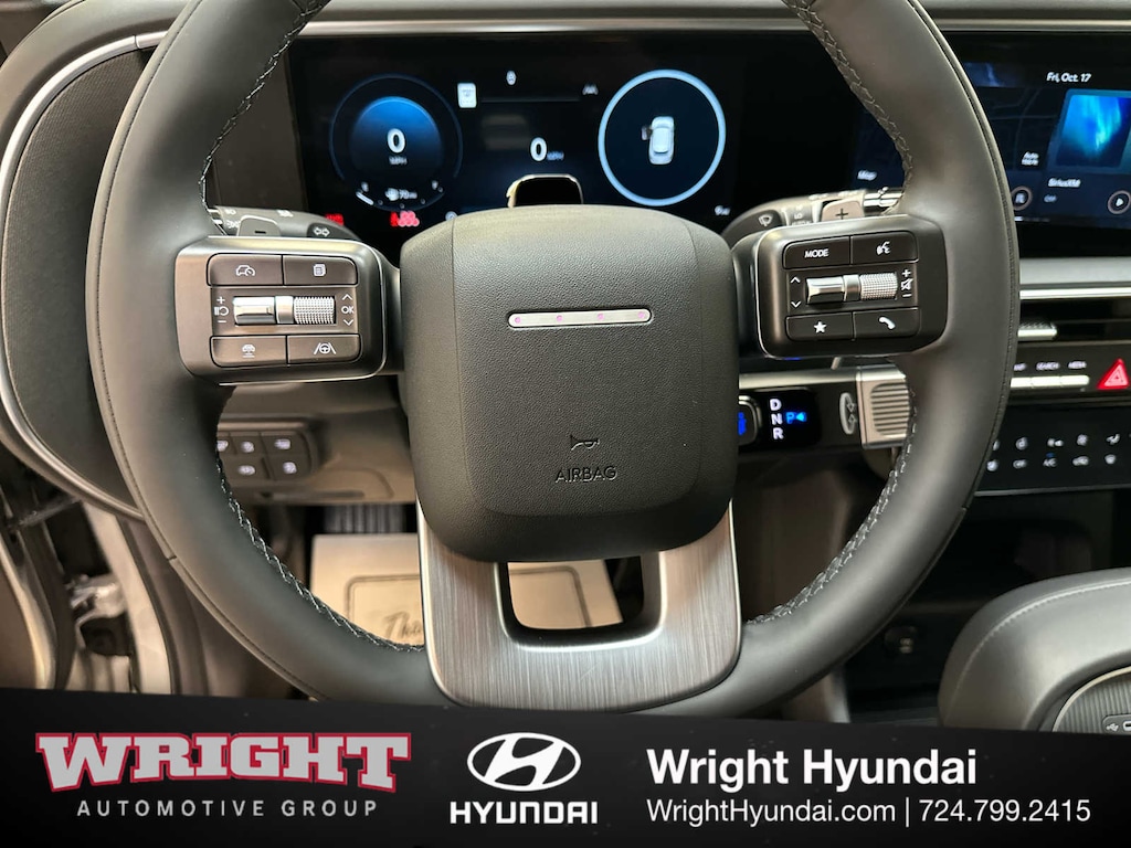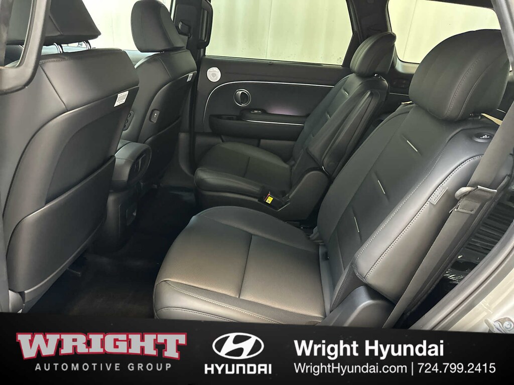 Leather Seats, Third Row Seat, Navigation, Quad Bucket Seats, Power Liftgate, Rear Air, Heated Driver Seat, Heated Rear Seat, Cooled Driver Seat, Cooled Rear Seat, Back-Up Camera, Premium Sound System, Satellite Radio, iPod/MP3 Input, Onboard Communications System Hyundai Calligraphy with Typhoon Silver Metallic exterior and Black interior features a V6 Cylinder Engine with 287 HP at 5800 RPM*.