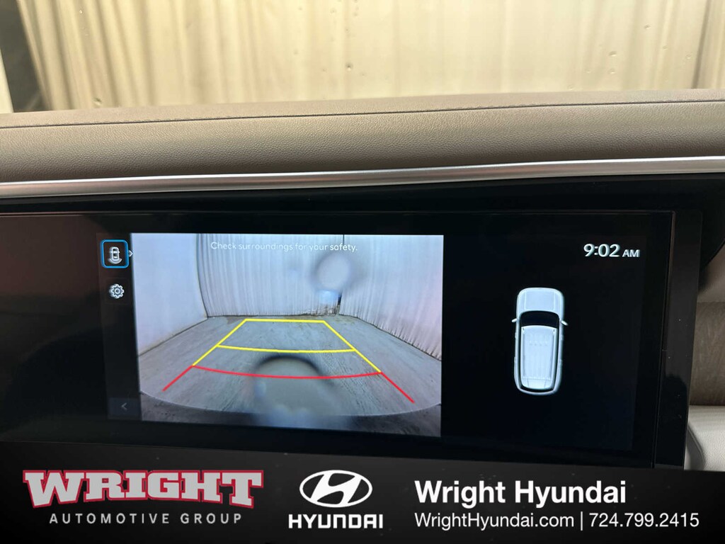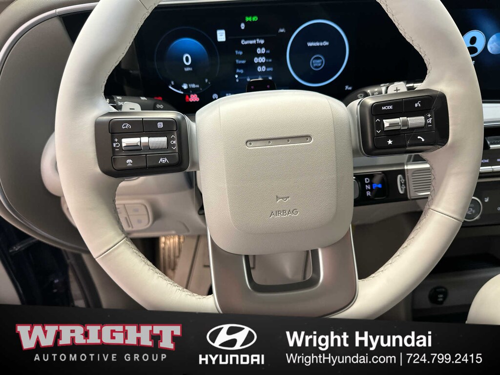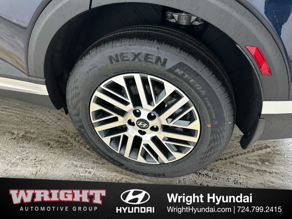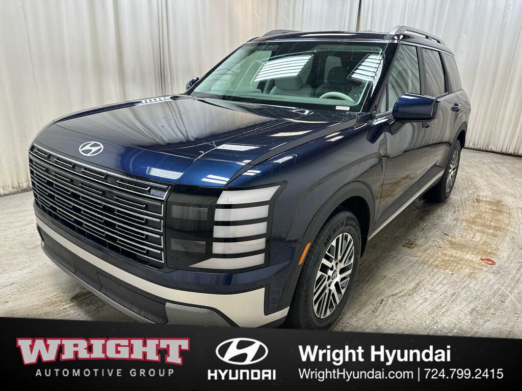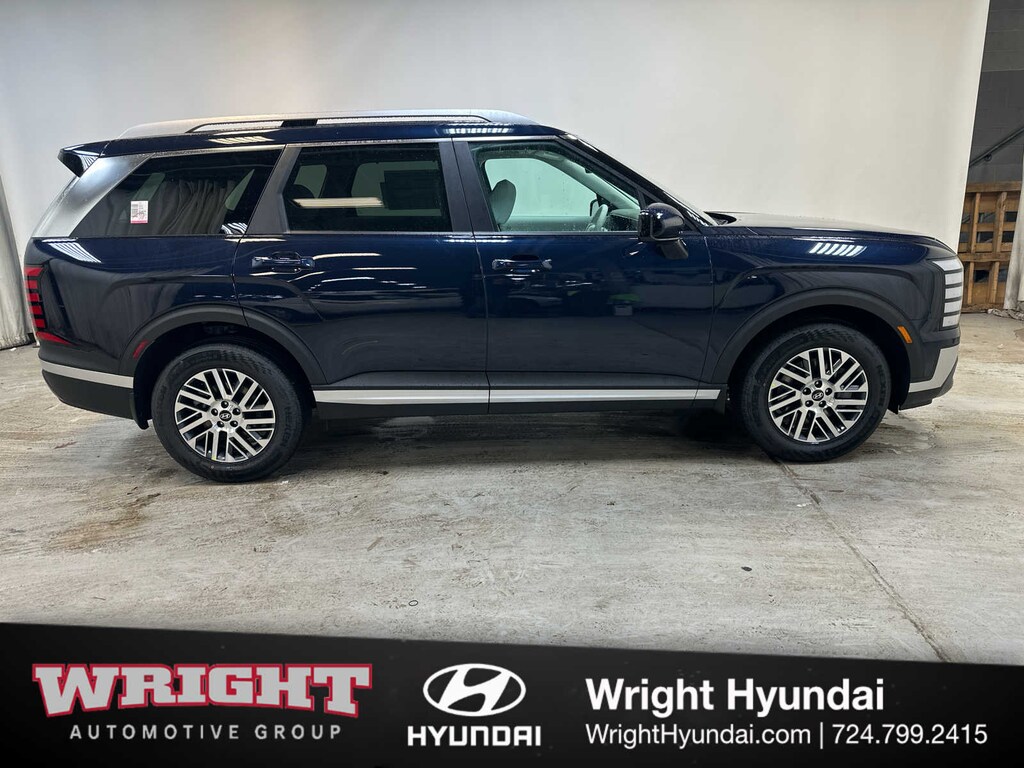 Third Row Seat, Navigation, Quad Bucket Seats, Power Liftgate, Rear Air, Heated Driver Seat, Back-Up Camera, Satellite Radio, iPod/MP3 Input, Onboard Communications System, Aluminum Wheels, Remote Engine Start, Dual Zone A/C, Blind Spot Monitor, Lane Keeping Assist Hyundai SEL 7P with Classy Blue Pearl exterior and Gray interior features a V6 Cylinder Engine with 287 HP at 5800 RPM*.