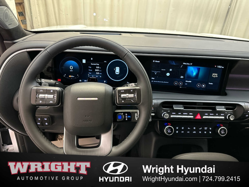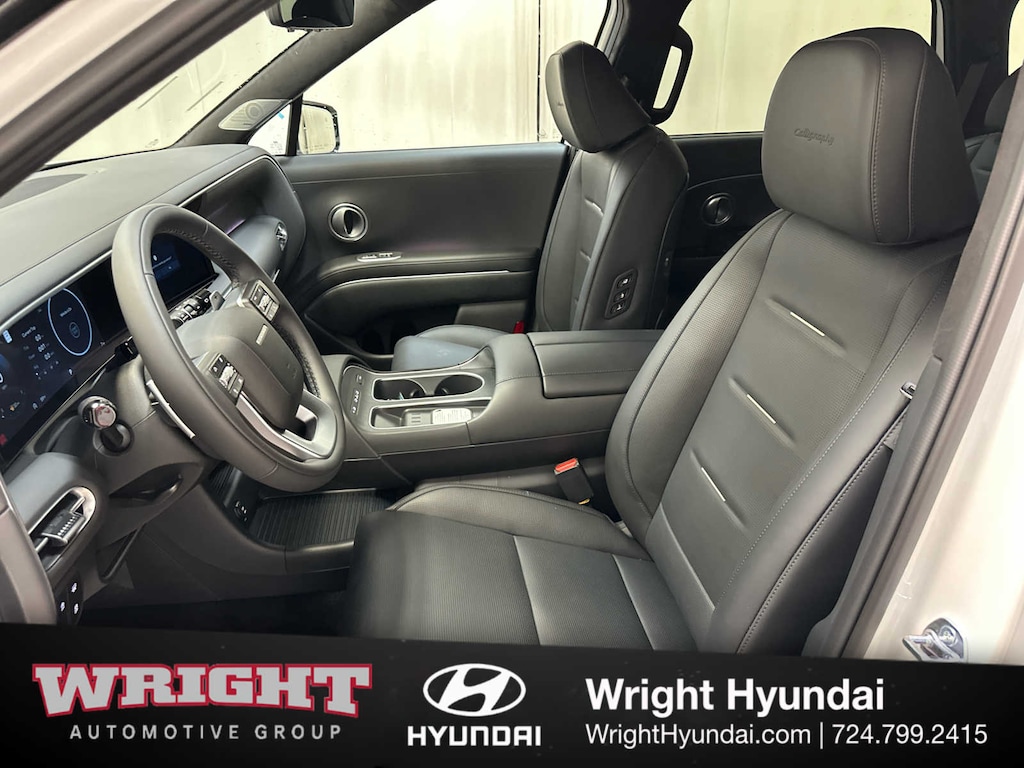 Leather Seats, Third Row Seat, Navigation, Quad Bucket Seats, Power Liftgate, Rear Air, Heated Driver Seat, Heated Rear Seat, Cooled Driver Seat, Cooled Rear Seat, Back-Up Camera, Premium Sound System, Satellite Radio, iPod/MP3 Input, Onboard Communications System Hyundai Calligraphy with Creamy White Pearl exterior and Black interior features a V6 Cylinder Engine with 287 HP at 5800 RPM*.