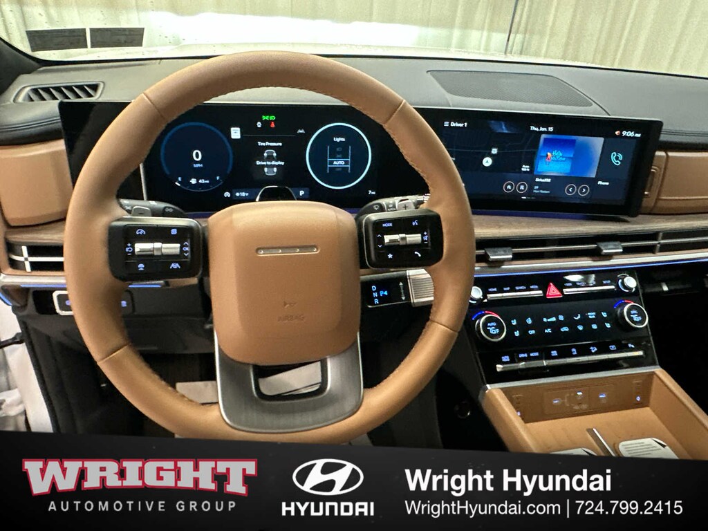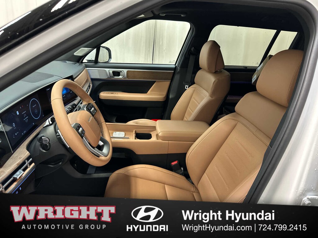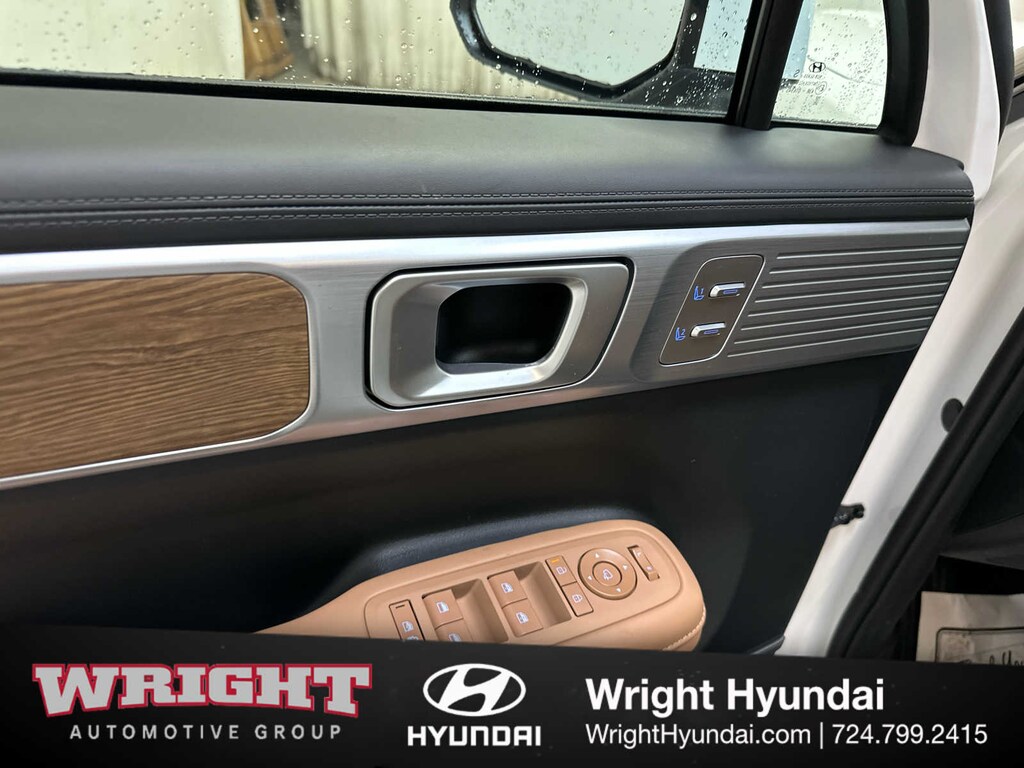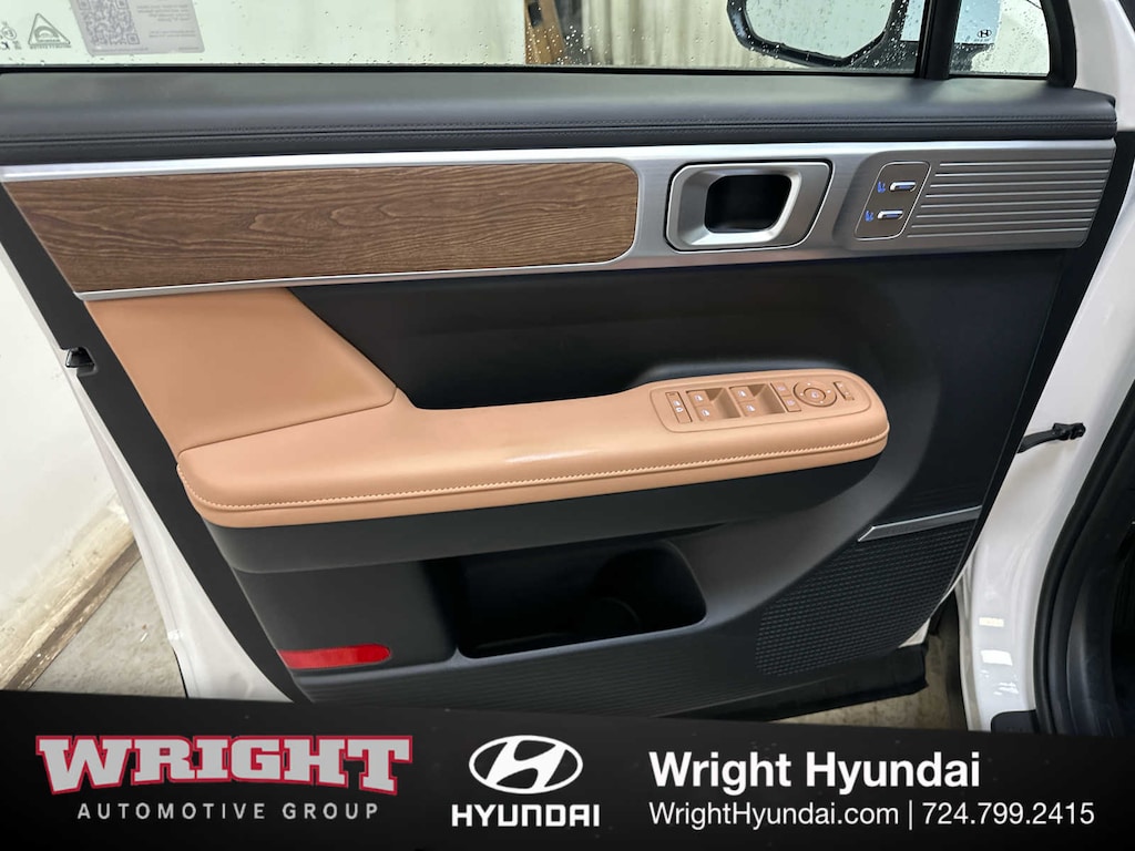 Leather Seats, Third Row Seat, Navigation, Quad Bucket Seats, Power Liftgate, Heated Driver Seat, Heated Rear Seat, Cooled Driver Seat, Back-Up Camera, Premium Sound System, Satellite Radio, iPod/MP3 Input, Onboard Communications System, Dual Moonroof, Aluminum Wheels Hyundai Limited with Serenity White exterior and Pecan Brown interior features a 4 Cylinder Engine with 277 HP at 5800 RPM*.