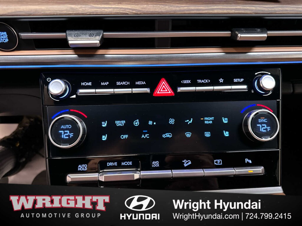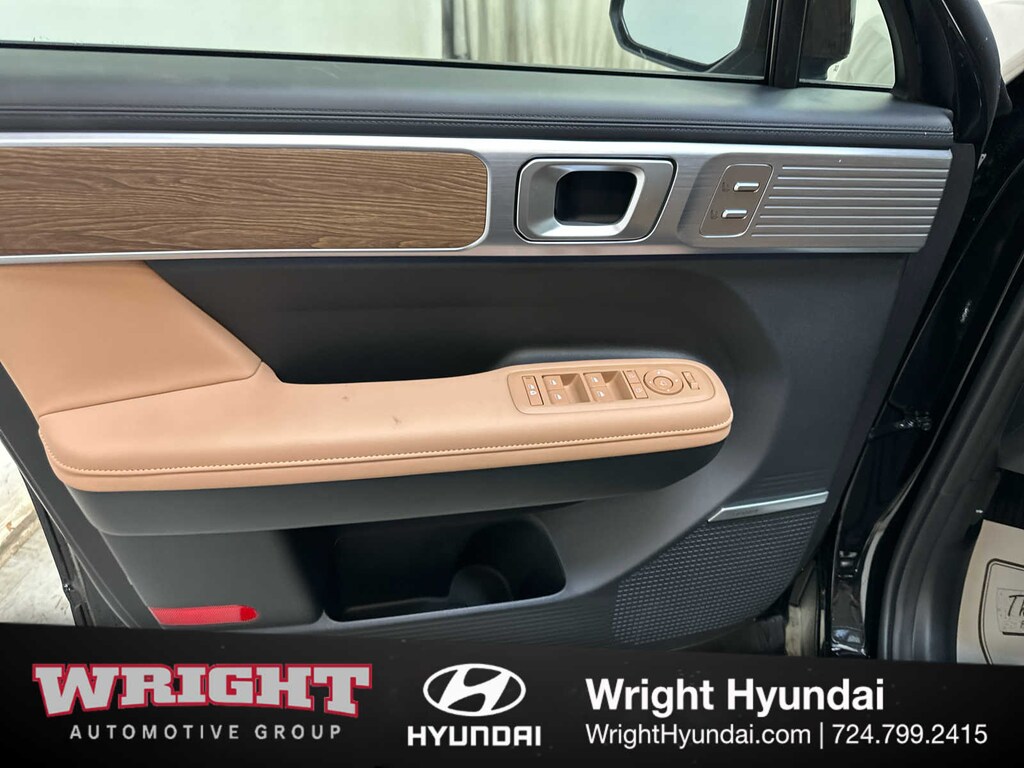 Leather Seats, Third Row Seat, Navigation, Quad Bucket Seats, Power Liftgate, Heated Driver Seat, Heated Rear Seat, Cooled Driver Seat, Back-Up Camera, Premium Sound System, Satellite Radio, iPod/MP3 Input, Onboard Communications System, Dual Moonroof, Aluminum Wheels. Hyundai Limited with Phantom Black exterior and Pecan Brown interior features a 4 Cylinder Engine with 231 HP at 5500 RPM*.