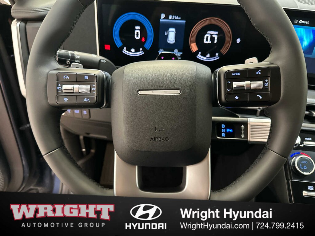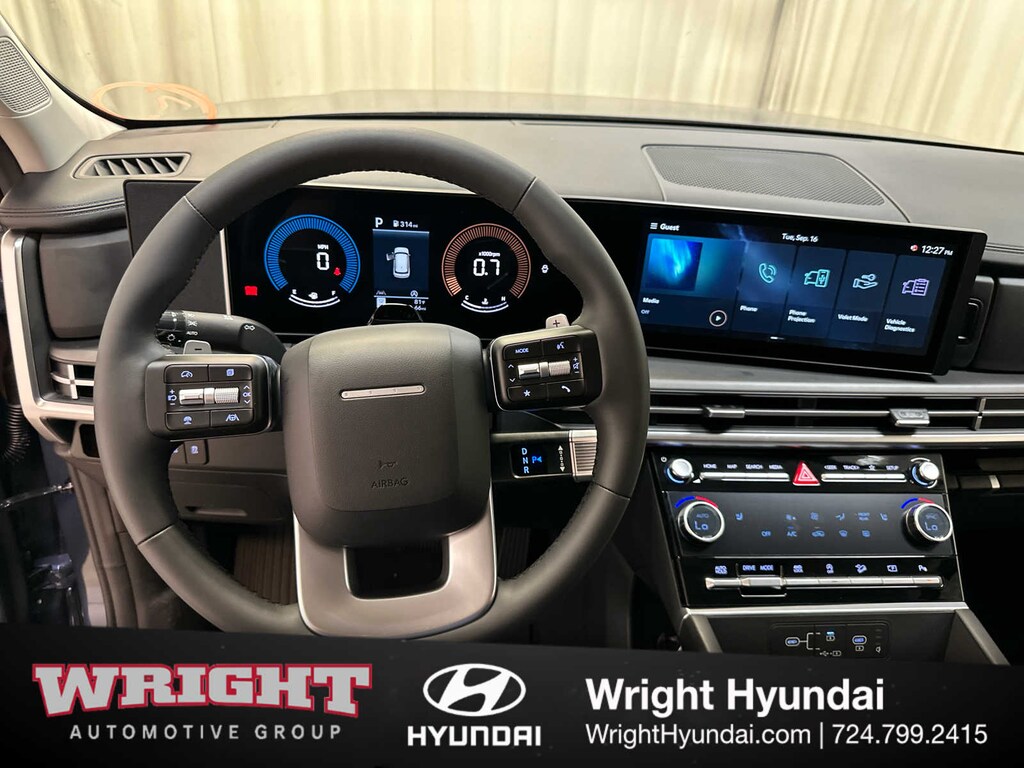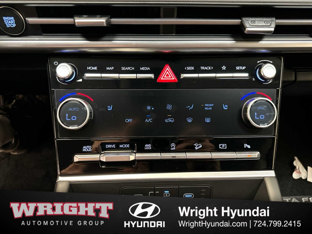 Third Row Seat, All Wheel Drive, Power Liftgate, Heated Driver Seat, Back-Up Camera, Turbocharged, Satellite Radio, iPod/MP3 Input, Onboard Communications System, Aluminum Wheels, Remote Engine Start, Dual Zone A/C, Cross-Traffic Alert, Blind Spot Monitor, Hands-Free Liftgate. Hyundai SEL with Atlantis Blue exterior and Black interior features a 4 Cylinder Engine with 277 HP at 5800 RPM*.