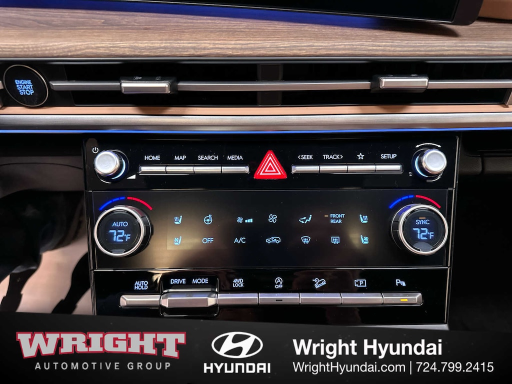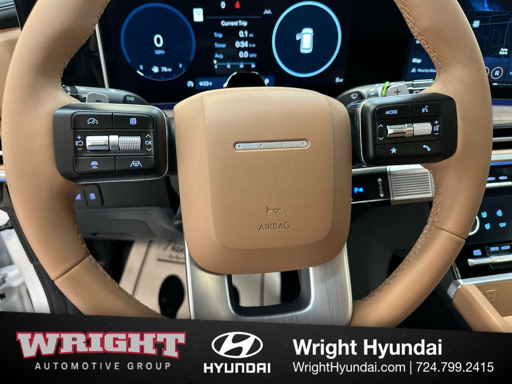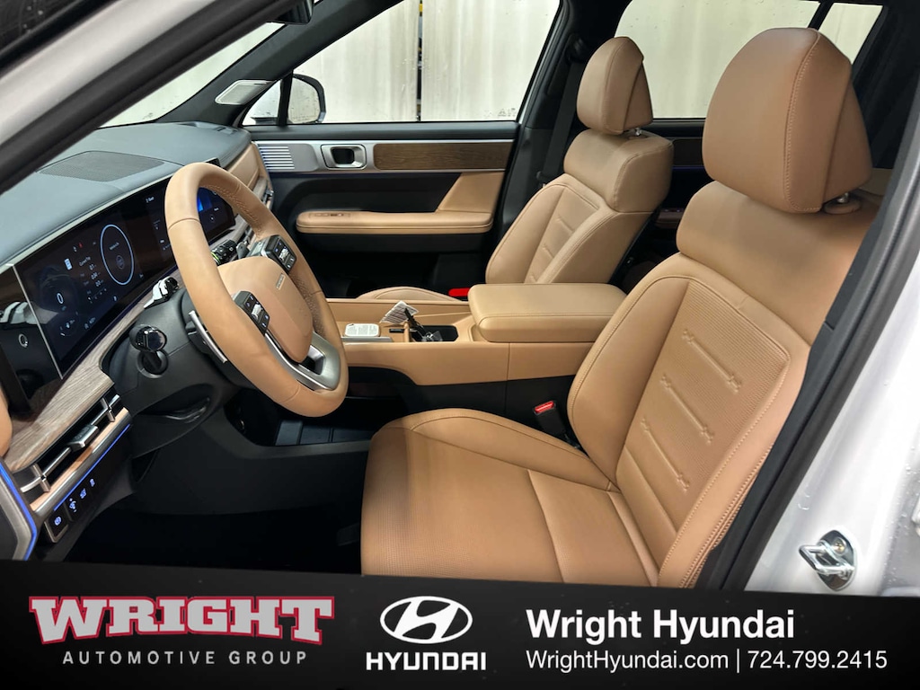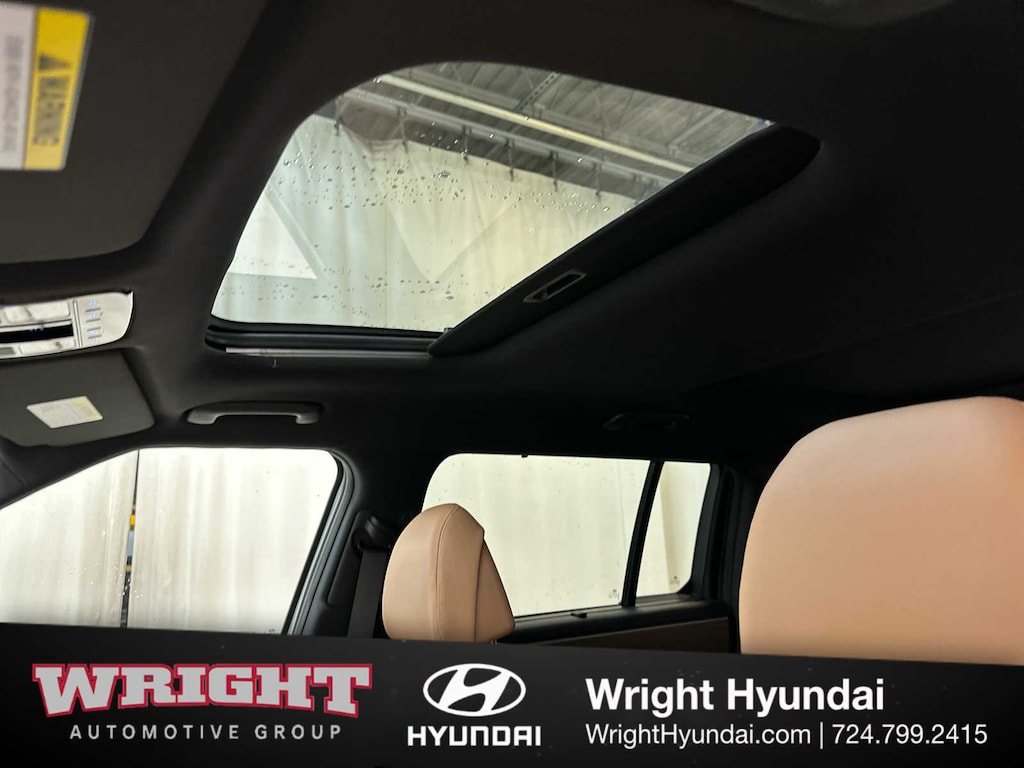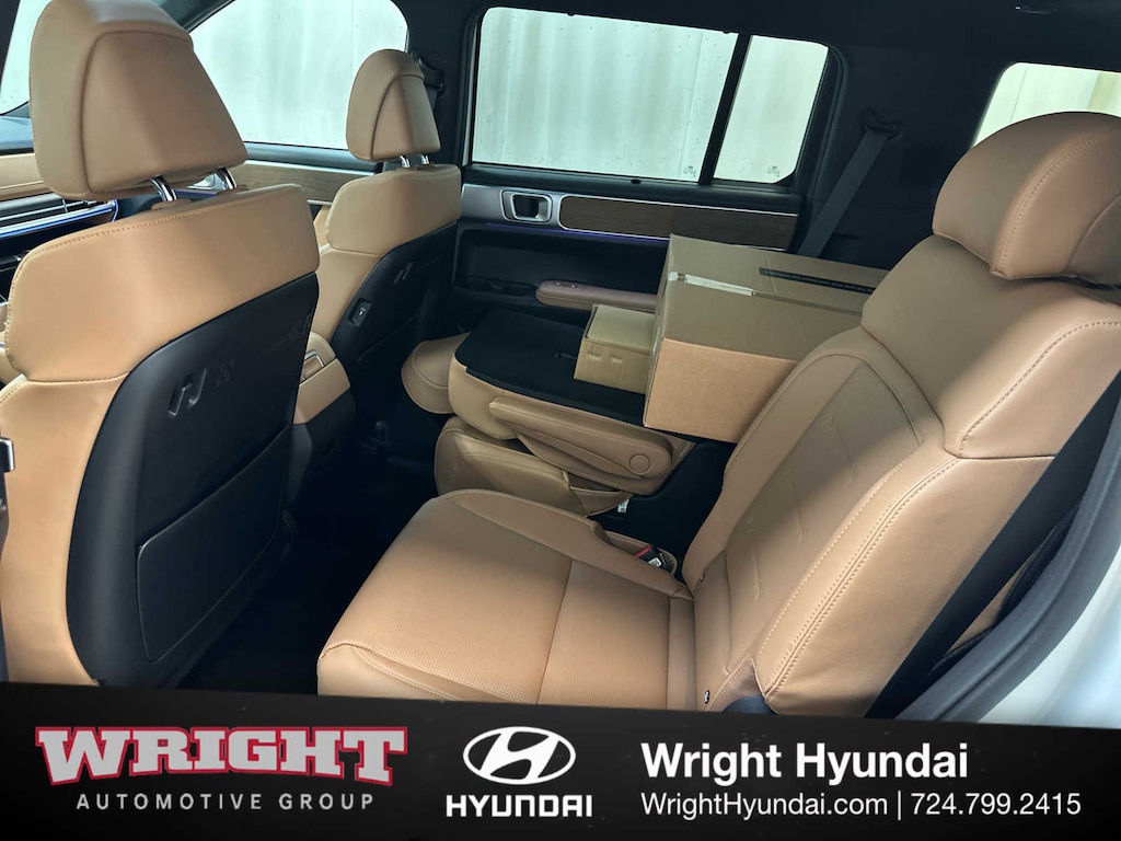 Leather Seats, Third Row Seat, Navigation, All Wheel Drive, Quad Bucket Seats, Power Liftgate, Heated Driver Seat, Heated Rear Seat, Cooled Driver Seat, Back-Up Camera, Turbocharged, Premium Sound System, Satellite Radio, iPod/MP3 Input, Onboard Communications System. Hyundai Limited with Serenity White exterior and Pecan Brown interior features a 4 Cylinder Engine with 277 HP at 5800 RPM*.