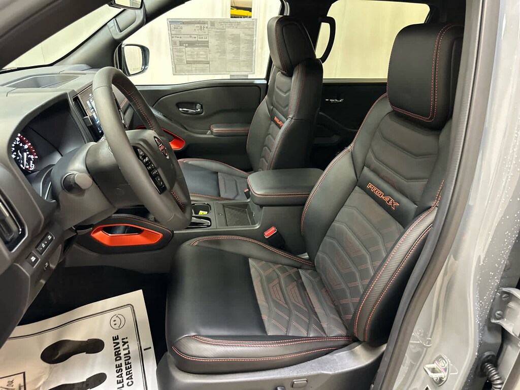 Auto-Dimming Mirror, Nissan Door-to-Door Navigation, Traffic Sign Recognition (TSR), Fender Premium Audio System w/10 Speakers, dual subwoofer, Partial Under-Seat Storage Delete, HomeLink UGDO, Auto-Tilt & Slide Sunroof w/Manual Shade, Bed Under-Rail Lighting, Remote Engine Starter, 120V Power Outlet in Bed, Heated Front Seats, Intelligent Around View Monitor (I-AVM), Moving Object Detection (MOD) and enhanced off-road mode, Utili-Track System, 2 adjustable tie-down cleats, Spray-In Bedliner, Trailer Hitch w/Wiring Harness, VPC installed accessory, Heated Steering Wheel, Wireless Charging for Personal Devices, Heated Outside Mirrors, 120V Power Outlet in Rear Center Console, OFF-ROAD STYLE STEP RAILS. Hands Free, Privacy Glass, Electronic Stability Control, Bucket Seats, Brake Assist.