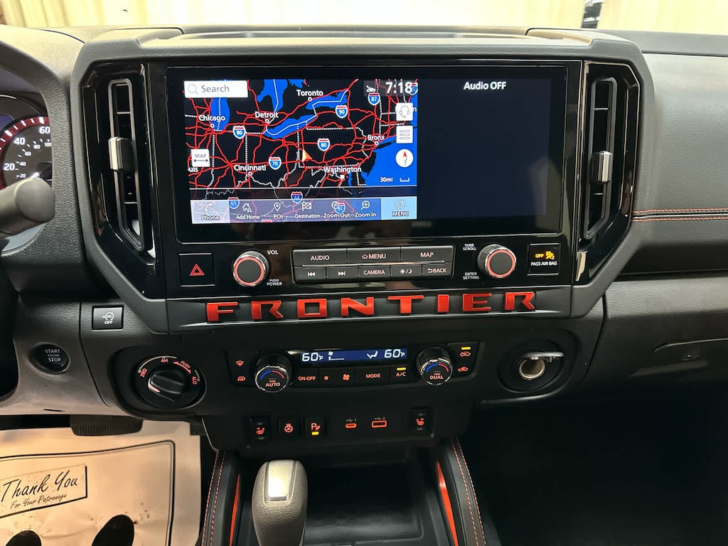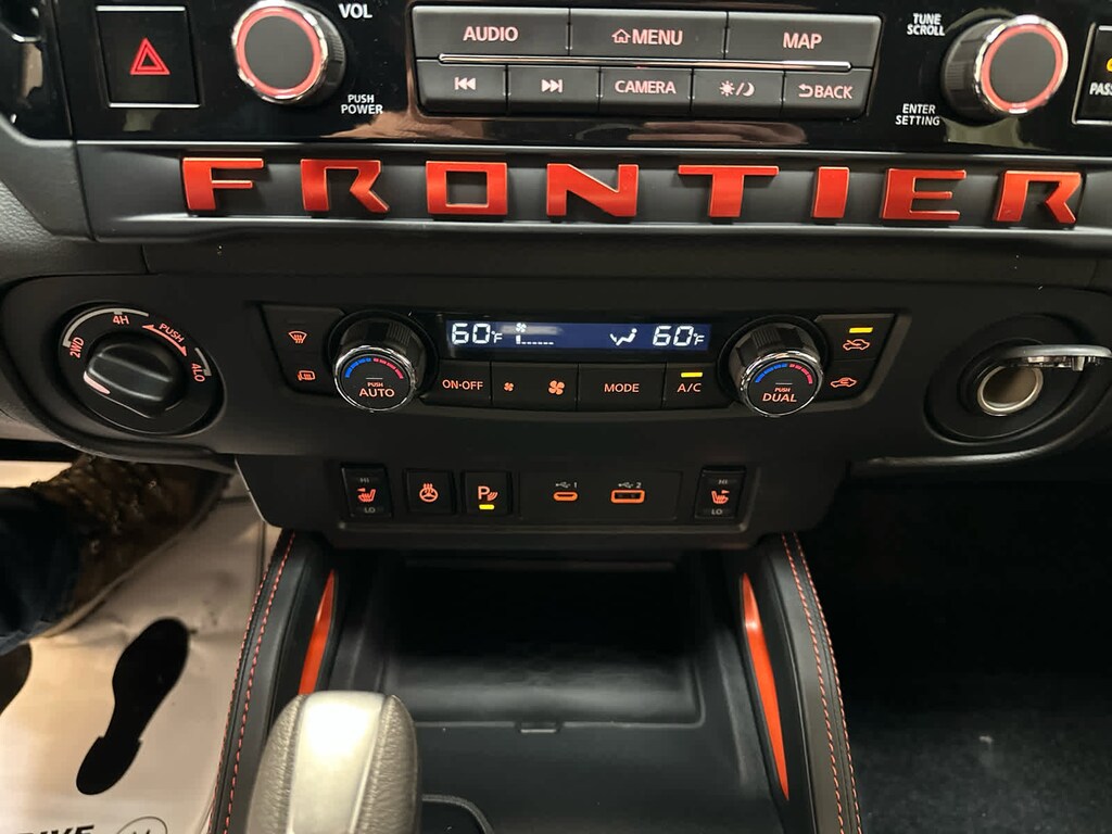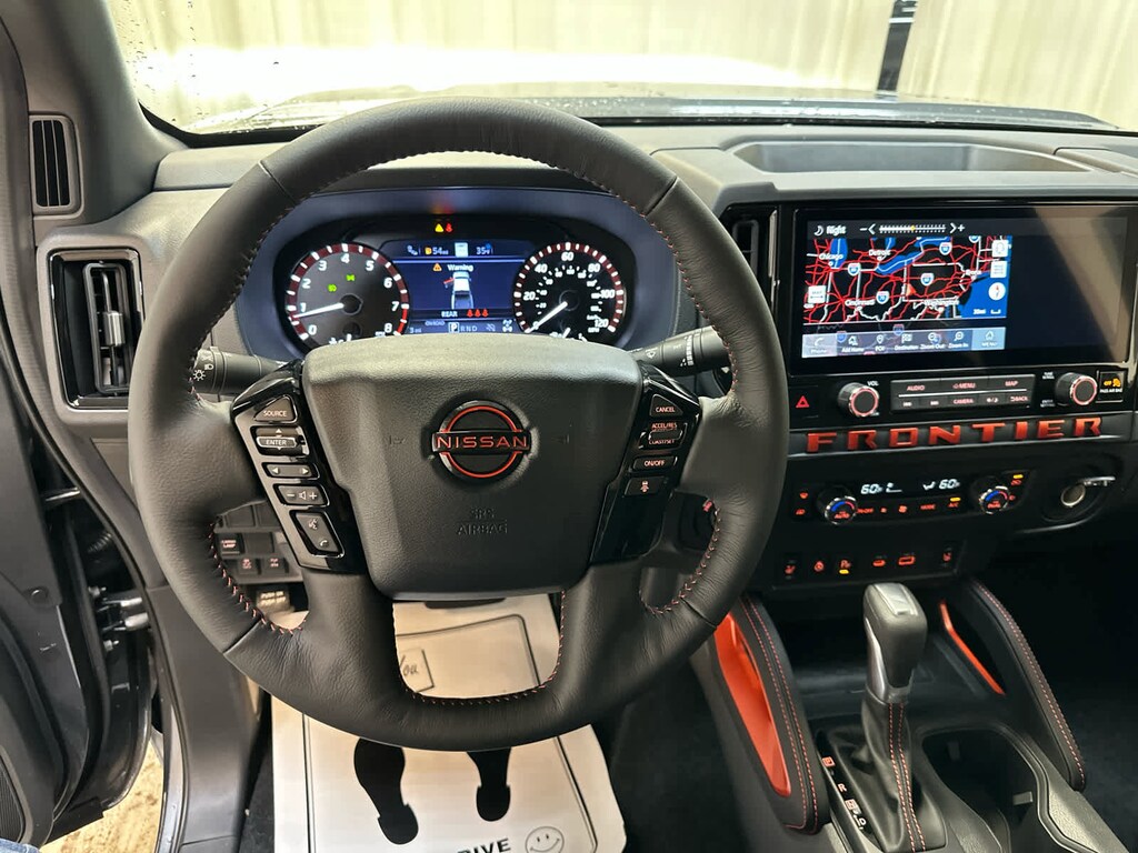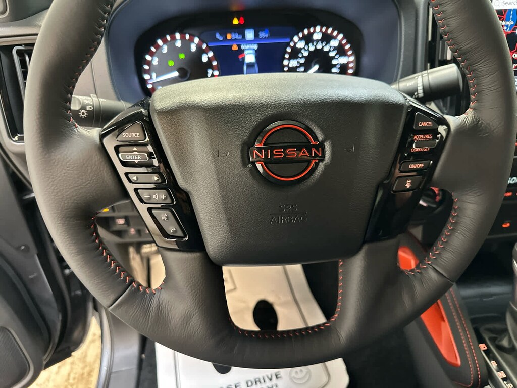 Auto-Dimming Mirror, Nissan Door-to-Door Navigation, Traffic Sign Recognition (TSR), Fender Premium Audio System w/10 Speakers, dual subwoofer, Partial Under-Seat Storage Delete, HomeLink UGDO, Auto-Tilt & Slide Sunroof w/Manual Shade, Bed Under-Rail Lighting, Remote Engine Starter, 120V Power Outlet in Bed, Heated Front Seats, Intelligent Around View Monitor (I-AVM), Moving Object Detection (MOD) and enhanced off-road mode, Utili-Track System, 2 adjustable tie-down cleats, Spray-In Bedliner, Trailer Hitch w/Wiring Harness, Heated Steering Wheel, Wireless Charging for Personal Devices, Heated Outside Mirrors, 120V Power Outlet in Rear Center Console, SOFT TONNEAU COVER (5.0 BED), OFF-ROAD STYLE STEP RAILS, ESSENTIALS KIT: adventure medic kit, off-road adventure kit, seatback organizer and owners manual portfolio, ELECTRONIC TAILGATE LOCK, GRILLE ACCENT LIGHTING, MUD FLAPS. Hands Free, Privacy Glass, Electronic Stability Control, Bucket Seats, Brake Assist.