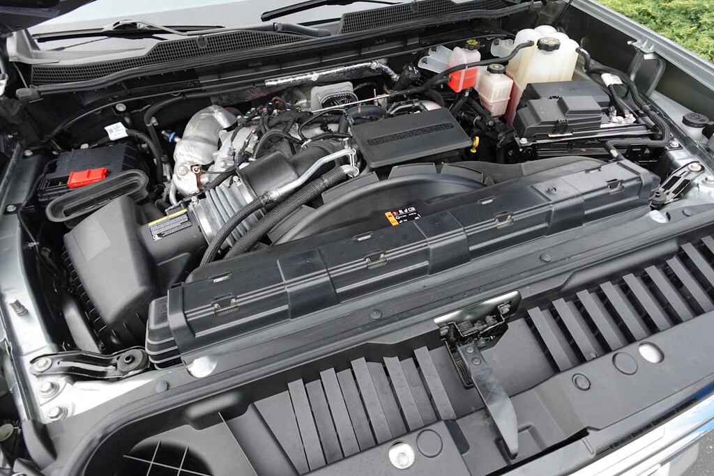 20" (50.8 CM) ALUMINUM HIGH GLOSS BLACK WITH MACHINED FINISH WHEELS LPO wheels will come with 4 aluminum 20" transit wheels from the factory with alignment specs set to 20" LPO wheel selected (dealer-installed) (Beginning with production starting on August 1, 2023, certain vehicles will no longer come with Black wheel lugs and locks and will instead come with bright finish lugs and locks.), ASSIST STEPS, POWER-RETRACTABLE, WITH BRIGHT TRIM includes LED lighting, POWER on Crew Cab models, GOOSENECK/5TH WHEEL PREP PACKAGE Hitch platform to accept Gooseneck or 5th Wheel hitch. Includes hitch platform with tray to accept ball, stamped bed holes with removable caps installed and bed mounted 7-pin trailer harness (similar to UY2 harness). (Includes (CGN) Chevytec spray-on bedliner. REAR AXLE, 3.42 RATIO, AUDIO SYSTEM, CHEVROLET INFOTAINMENT 3 PREMIUM SYSTEM with Google built-in compatibility (select service plan required, terms and limitations apply) including navigation capability, 13.4" diagonal HD color touchscreen, includes multi-touch display, AM/FM stereo, Bluetooth® streaming audio for music and most phones; featuring Wireless Apple CarPlay® and Wireless Android Auto® capability for compatible phones, advanced voice recognition, in-vehicle apps, personalized profiles for infotainment and vehicle settings (STD), GVWR, 11,550 LBS. (5239 KG), TRANSMISSION, ALLISON 10-SPEED AUTOMATIC. Privacy Glass, Keyless Entry, Steering Wheel Controls, Heated Mirrors, Alarm.