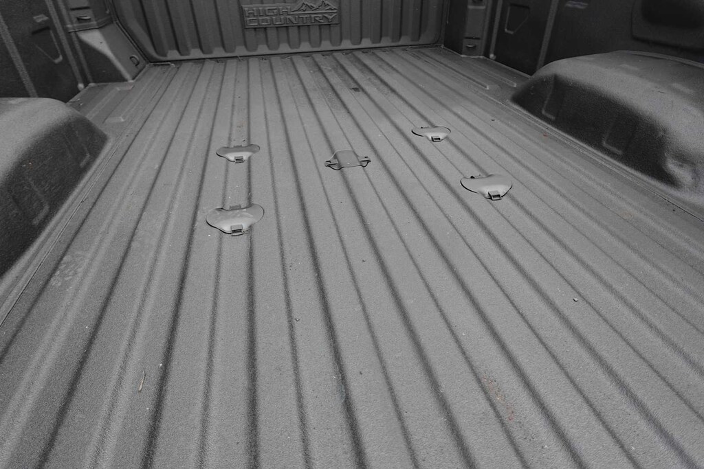 - Covers the bed interior surface below side rails, front bed top rail, gauge hole plugs and tie-downs