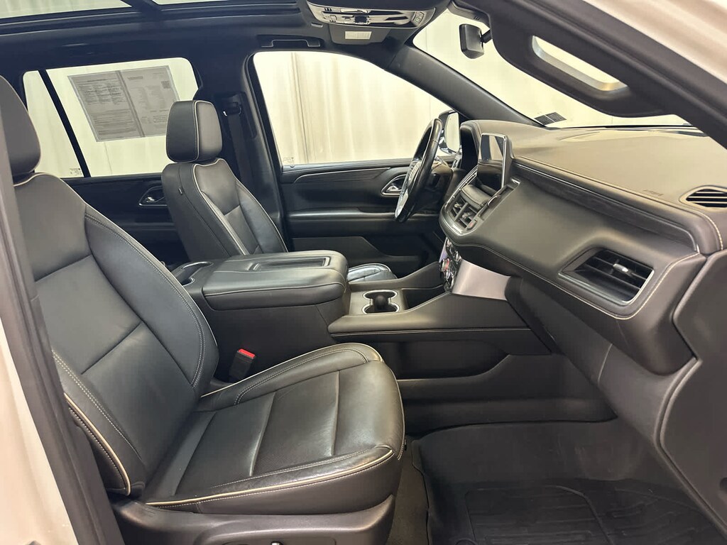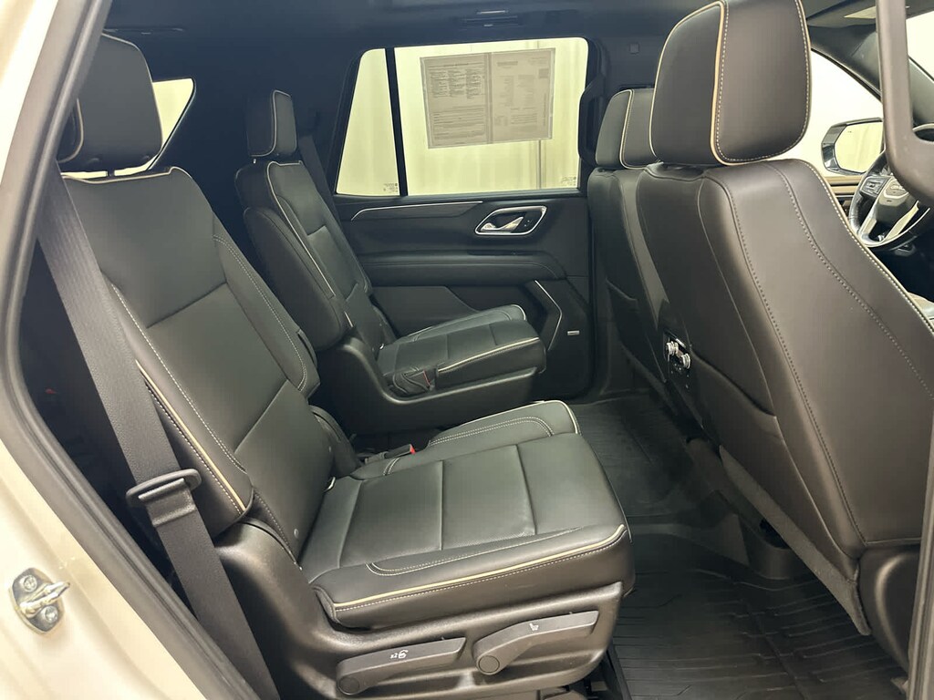 includes (WPL) SLT Luxury Package content, (NHT) Max Trailering Package and (C3U) Panoramic power sunroof, includes (UV2) HD Surround Vision, (UKK) Rear Pedestrian Alert, (A45) memory settings, (DXR) outside heated power-adjustable, power-folding, body-color mirrors with driver-side auto-dimming and integrated turn signal indicators, (N38) power tilt and telescopic steering column, (KI3) automatic heated steering wheel, (KA6) second row outboard heated seats, (ATT) second row power 60/40 split-folding bench seats and (AS8) third row power 60/40 splitfolding bench seats, SEATS, SECOND ROW BUCKET, POWER RELEASE, (dealer-installed), includes multi-touch display, AM/FM/SiriusXM stereo, Bluetooth® streaming audio for music and most phones, Android Auto® and Apple CarPlay® capability for compatible phones, advanced voice recognition, in-vehicle apps, personalized profiles for infotainment and vehicle settings (STD), with Dynamic Fuel Management, Direct Injection and Variable Valve Timing, includes aluminum block construction (355 hp [265 kW] @ 5600 rpm, 383 lb-ft of torque [518 Nm] @ 4100 rpm) (STD), electronically controlled with overdrive, includes Traction Select System including tow/haul (Most vehicles built on or after 6-7-2021 with a V8 engine will have (NSS) Not Equipped with Automatic Stop/Start, which removes Automatic Stop/Start, Engine control stop/start disable button and its content.) (STD). Privacy Glass, Remote Trunk Release, Keyless Entry, Steering Wheel Controls, Electronic Stability Control. Serviced here, Originally bought here, All Scheduled Maintenance Up To Date!