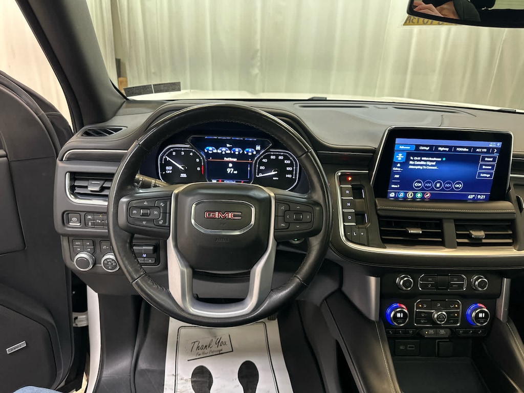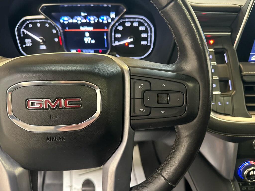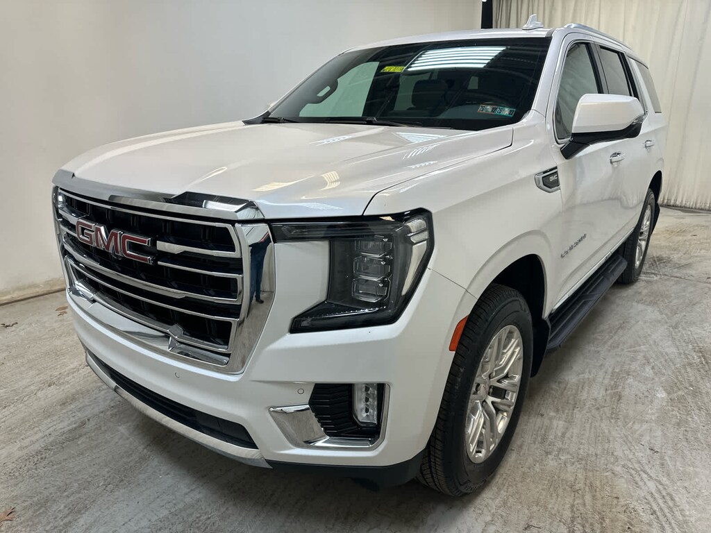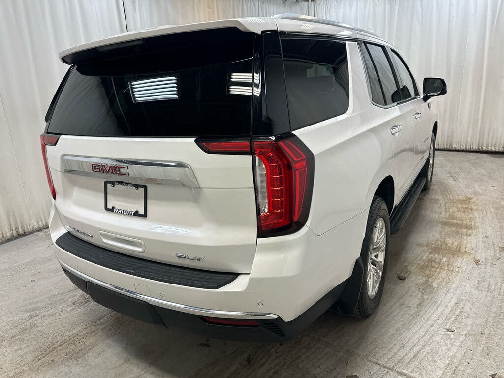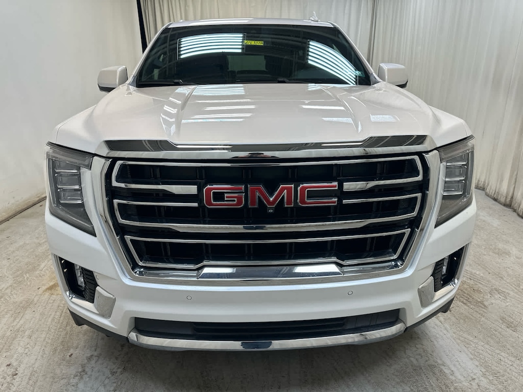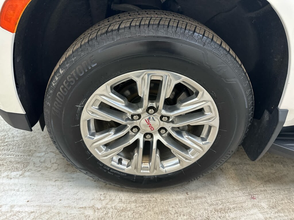 Leather Seats, Third Row Seat, Power Liftgate, Rear Air, Heated Driver Seat, Cooled Driver Seat, Running Boards, Premium Sound System, Onboard Communications System, Trailer Hitch, Aluminum Wheels, Remote Engine Start, Dual Zone A/C, Blind Spot Monitor, Cross-Traffic Alert. GMC SLT with White Frost Tricoat exterior and Jet Black interior features a 8 Cylinder Engine with 355 HP at 5600 RPM*.