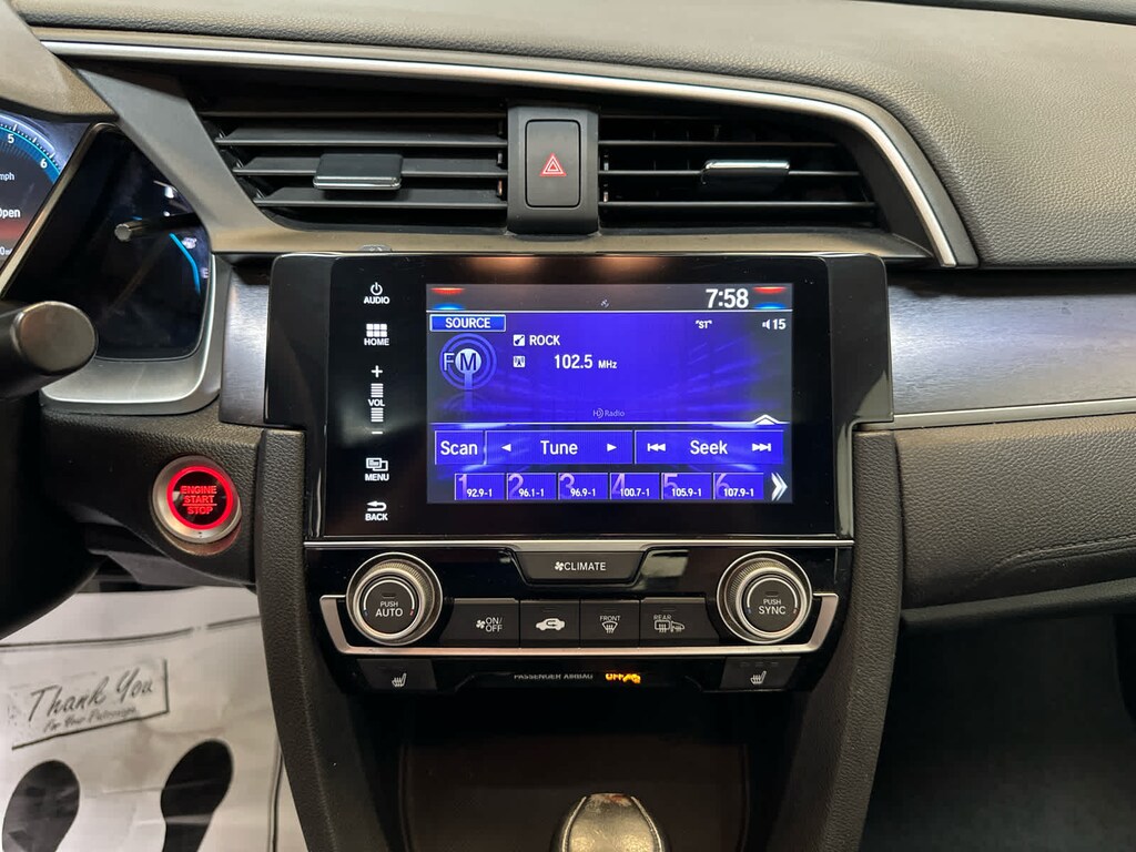 Leather Seats, Sunroof, Heated Driver Seat, Back-Up Camera, Satellite Radio, iPod/MP3 Input, Onboard Communications System, Aluminum Wheels, Remote Engine Start, Dual Zone A/C, Smart Device Integration, Apple CarPlay®, Heated Seats, Heated Leather Seats Honda EX-L with Lunar Silver Metallic exterior and Black interior features a 4 Cylinder Engine with 174 HP at 6000 RPM*. Rear Spoiler, MP3 Player, Keyless Entry, Steering Wheel Controls, Child Safety Locks.
