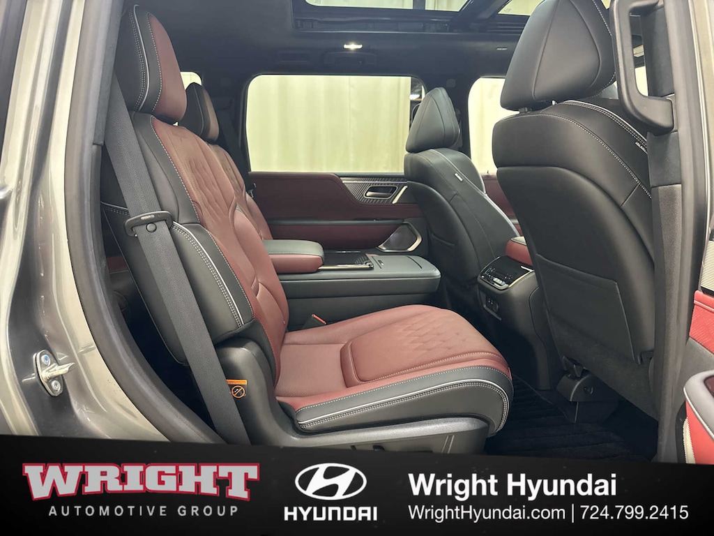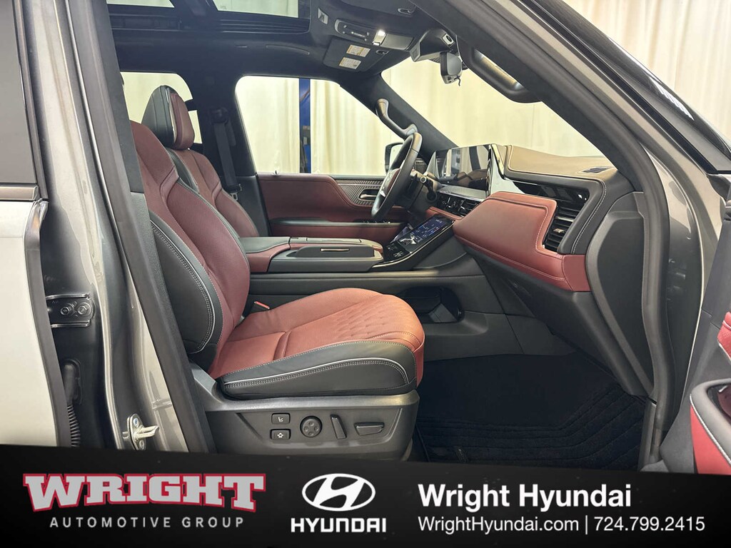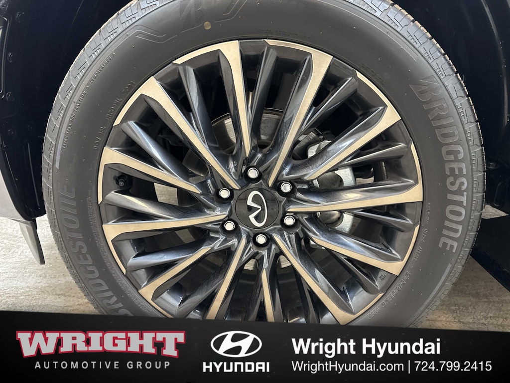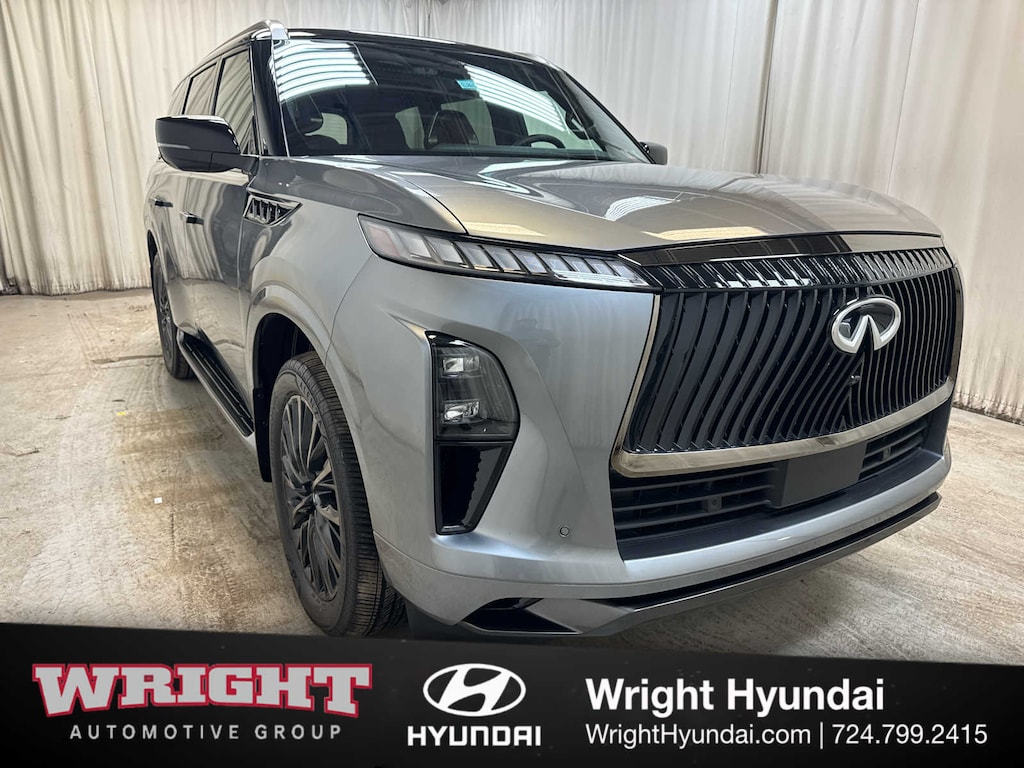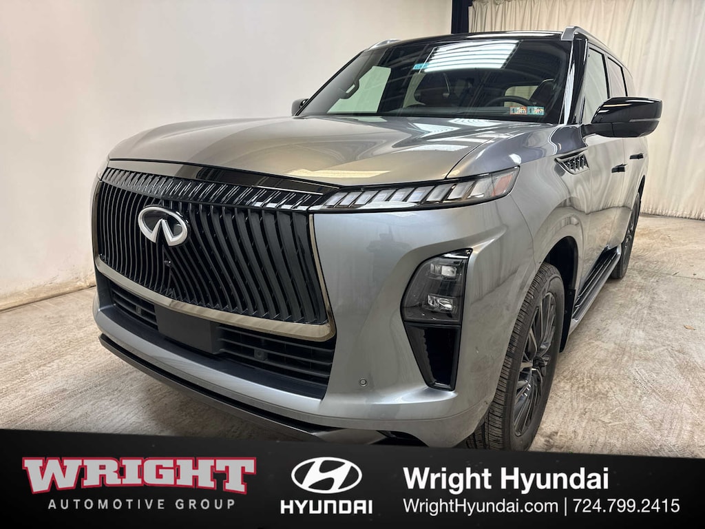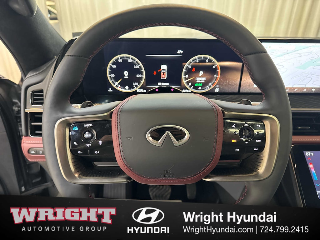 Leather Seats, Third Row Seat, Navigation, Sunroof, Panoramic Roof, Quad Bucket Seats, Power Liftgate, Rear Air, Heated Driver Seat, Heated Rear Seat, Cooled Driver Seat, Cooled Rear Seat, Back-Up Camera, Running Boards, Premium Sound System INFINITI AUTOGRAPH with Dynamic Metal/Black Obsidian exterior and Burgundy interior features a V6 Cylinder Engine with 450 HP at 5600 RPM*. Rear Spoiler, MP3 Player, Privacy Glass, Keyless Entry, Remote Trunk Release.