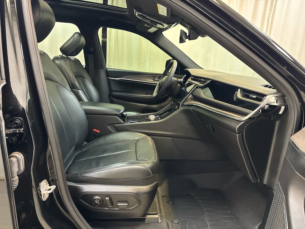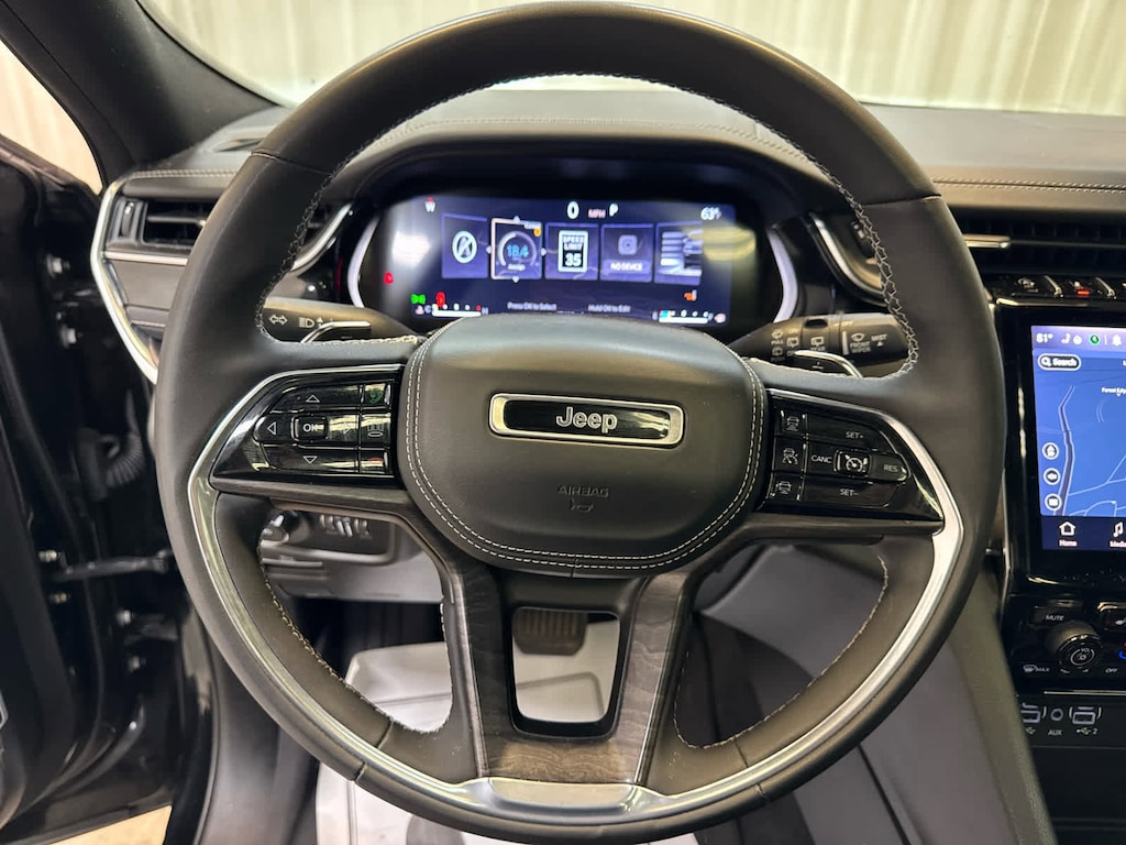 Leather Seats, Navigation, Panoramic Moonroof, Captains Chairs, Power Liftgate, Sirus XM Radio, Heated Seats, Heated Rear Seats, Cooled Seats, Back-Up Camera, Premium Sound System, iPod/MP3 Input, Trailer Hitch, Aluminum Wheels, Remote Engine Start. Jeep Overland with Diamond Black Crystal Pearlcoat exterior and Global Black interior features a V6 Cylinder Engine with 293 HP at 6400 RPM*.