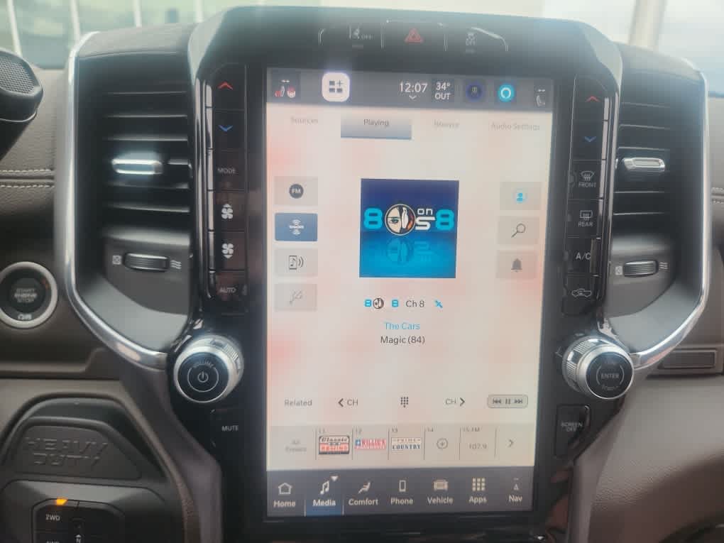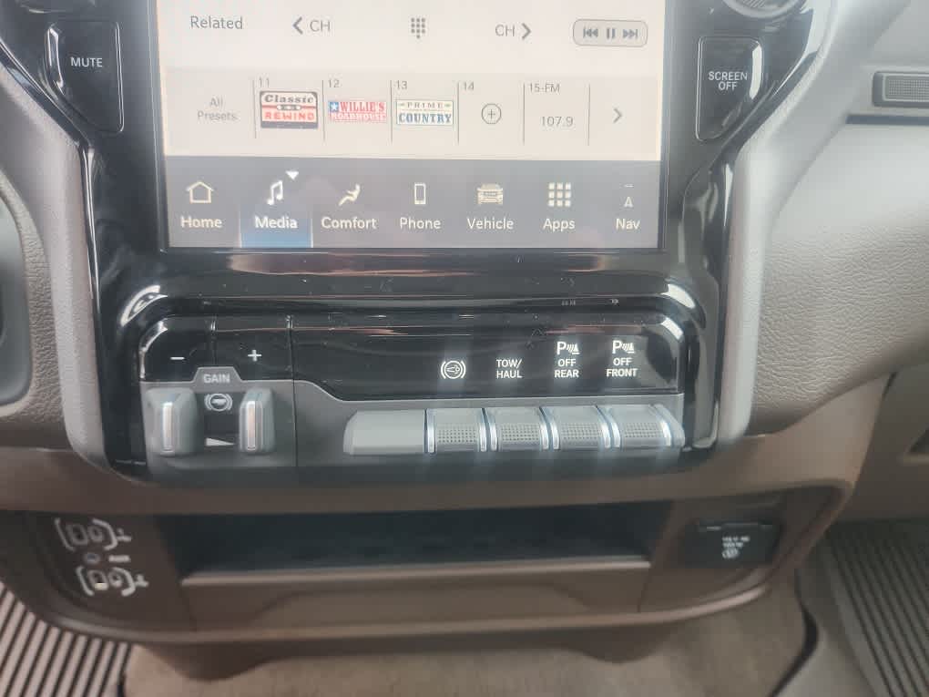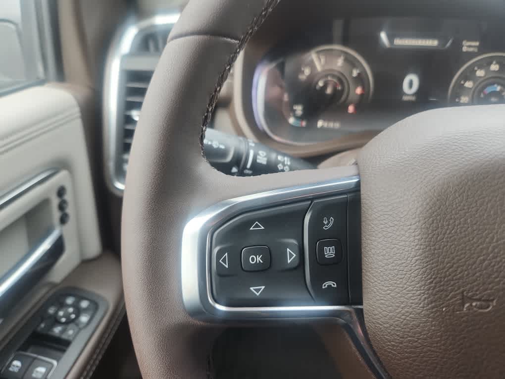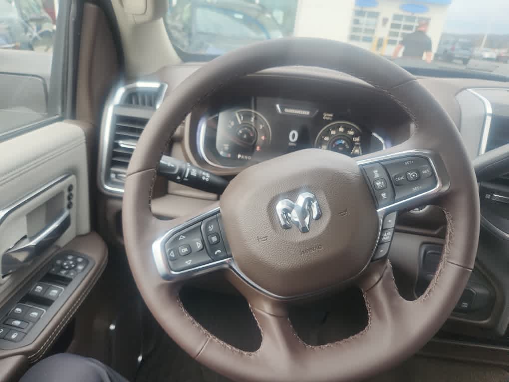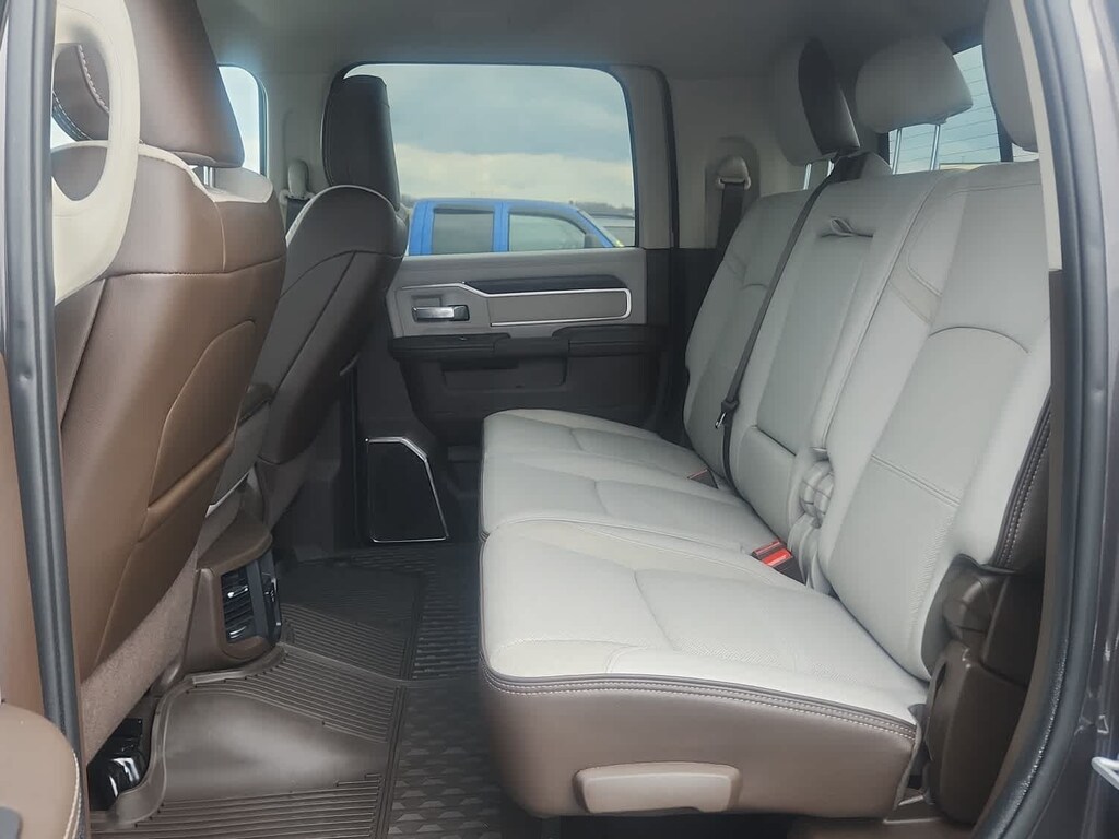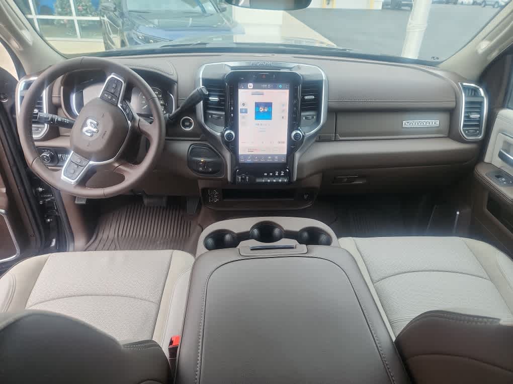 Navigation, Heated Driver Seat, Satellite Radio, AUX Input, Apple CarPlay®. Ram Laramie with Granite Crystal Metallic Clearcoat exterior and Bison Brown/Sea Salt interior features a Straight 6 Cylinder Engine with 430 HP at 2800 RPM*.