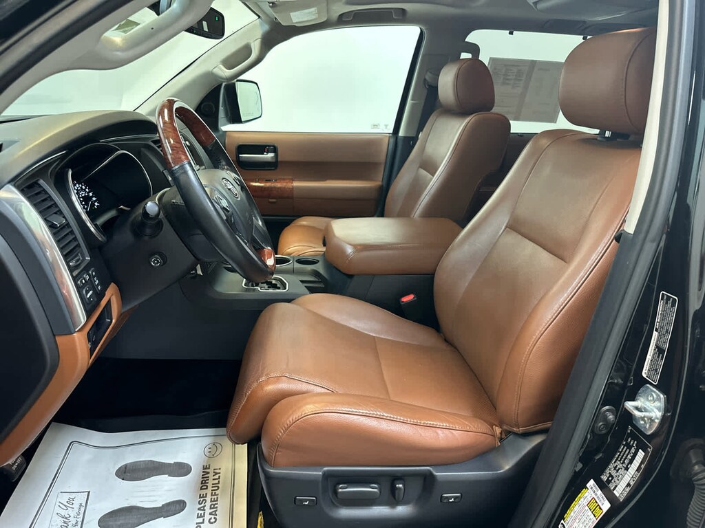 Leather Seats, Navigation, DVD Entertainment System, Captains Chairs, Power Liftgate, Sirus XM Radio, Heated Seats, Heated Rear Seats, Cooled Seats, Back-Up Camera, Running Boards, Premium Sound System, iPod/MP3 Input, Bluetooth®, Trailer Hitch. Toyota Platinum with Midnight Black Metallic exterior and Redrock/Black interior features a 8 Cylinder Engine with 381 HP at 5600 RPM*.